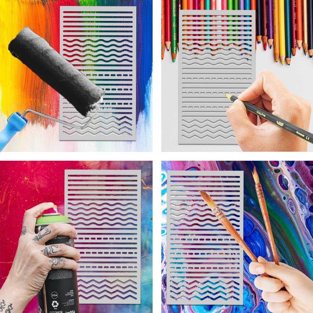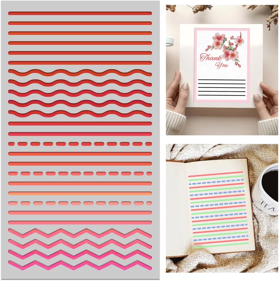 Metal Stencil for Painting - Straight, Wavy, Broken & Dotted Lines - DIY Crafts, Wood, Wall, Scrapbooking, Cookie & Furniture Decor - 4''*7''