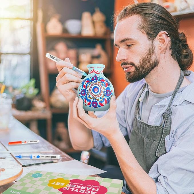 - 【Suitable for a variety of surfaces】Our brush-head acrylic painting pens can be used on a variety of surfaces, such as rock paintings, fabrics, ceramics, glass, wood, plastic, leather, canvas, resin, plaster, shoes, tires, blackboards. Great for artists, students, teens and adults.