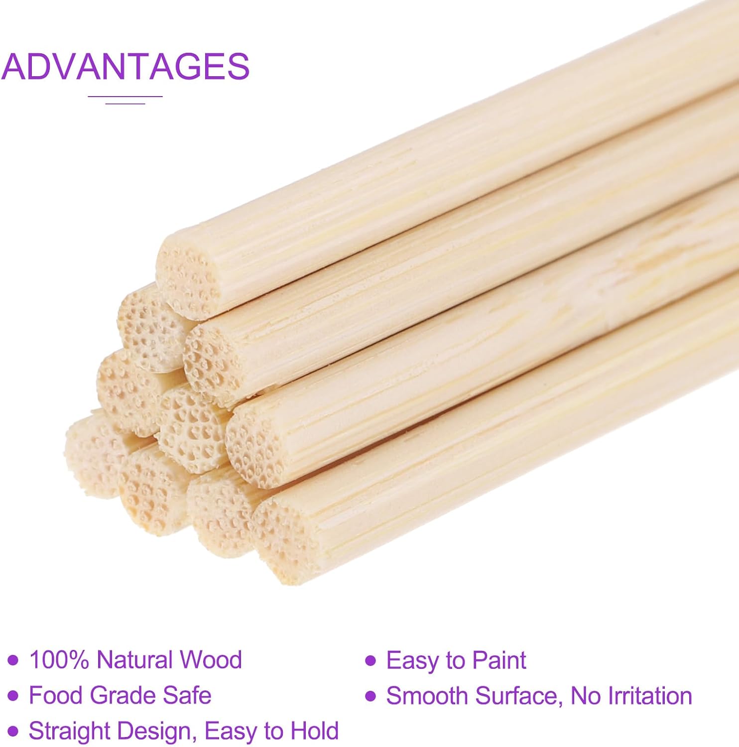 - SIZE: Wooden Dowel Rods size:3mm x 300mm/1/8" x 12", Thickness: 3mm/1/8", Color: wood color.