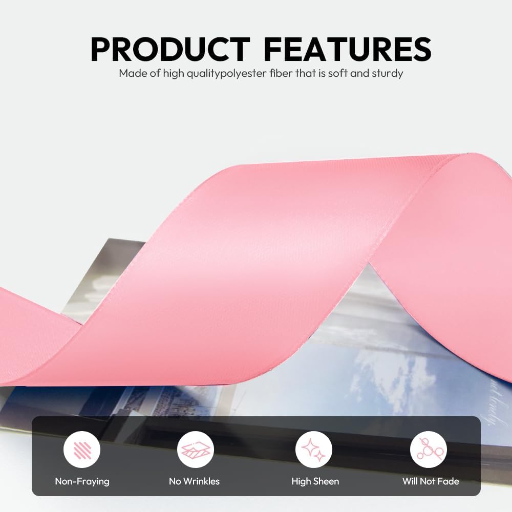 - 【High Quality】: Our fabric satin ribbon is made of 100% high-quality polyester. The single face ribbon for gift wrapping is Light Pink color and has smooth texture which is easy to cut and use.