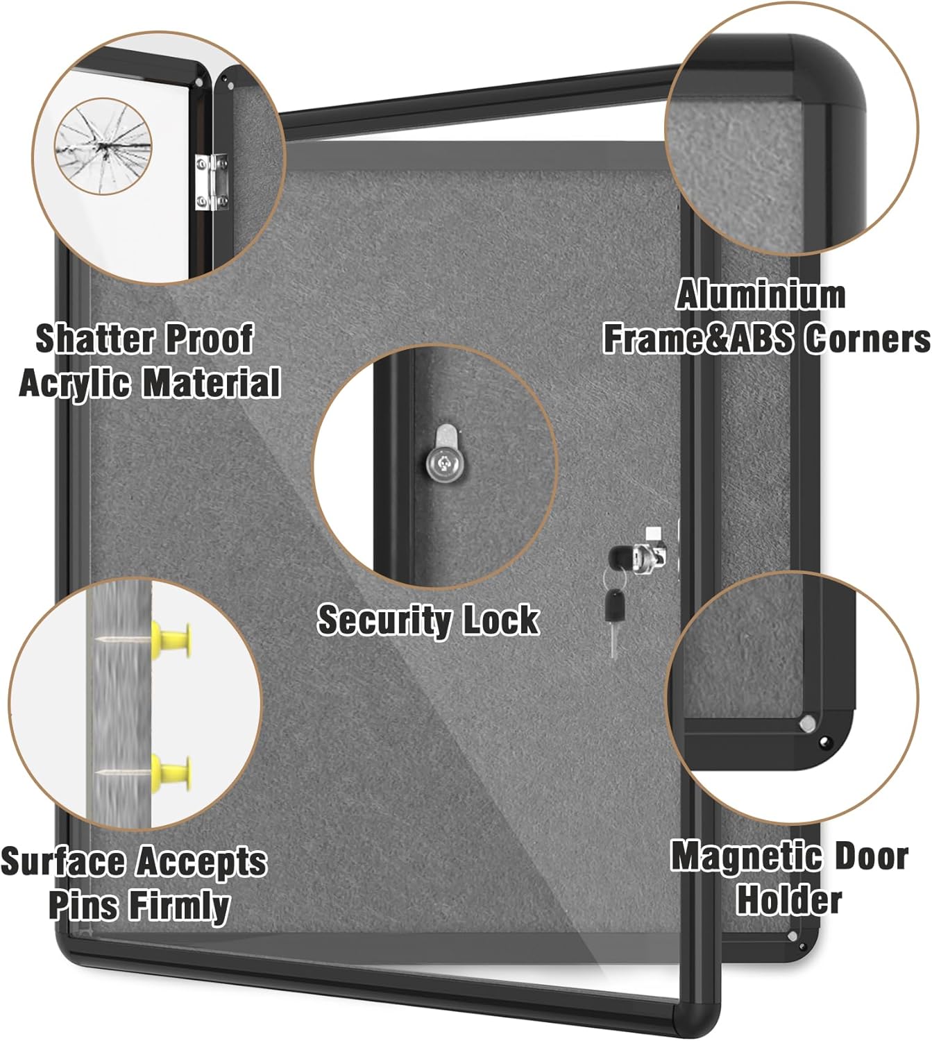 - 🌟✔【Secure Enclosed Bulletin Board】: This lockable bulletin board ensures the safety of your announcements and guarantees that posted items can only be removed by authorized individuals. Suitable for push pins, thumb tacks, or map pins, it's perfect for displaying notes, messages, pictures, memos, calendars, menus, reminders, and more. Ideal for home, office, or business environments.