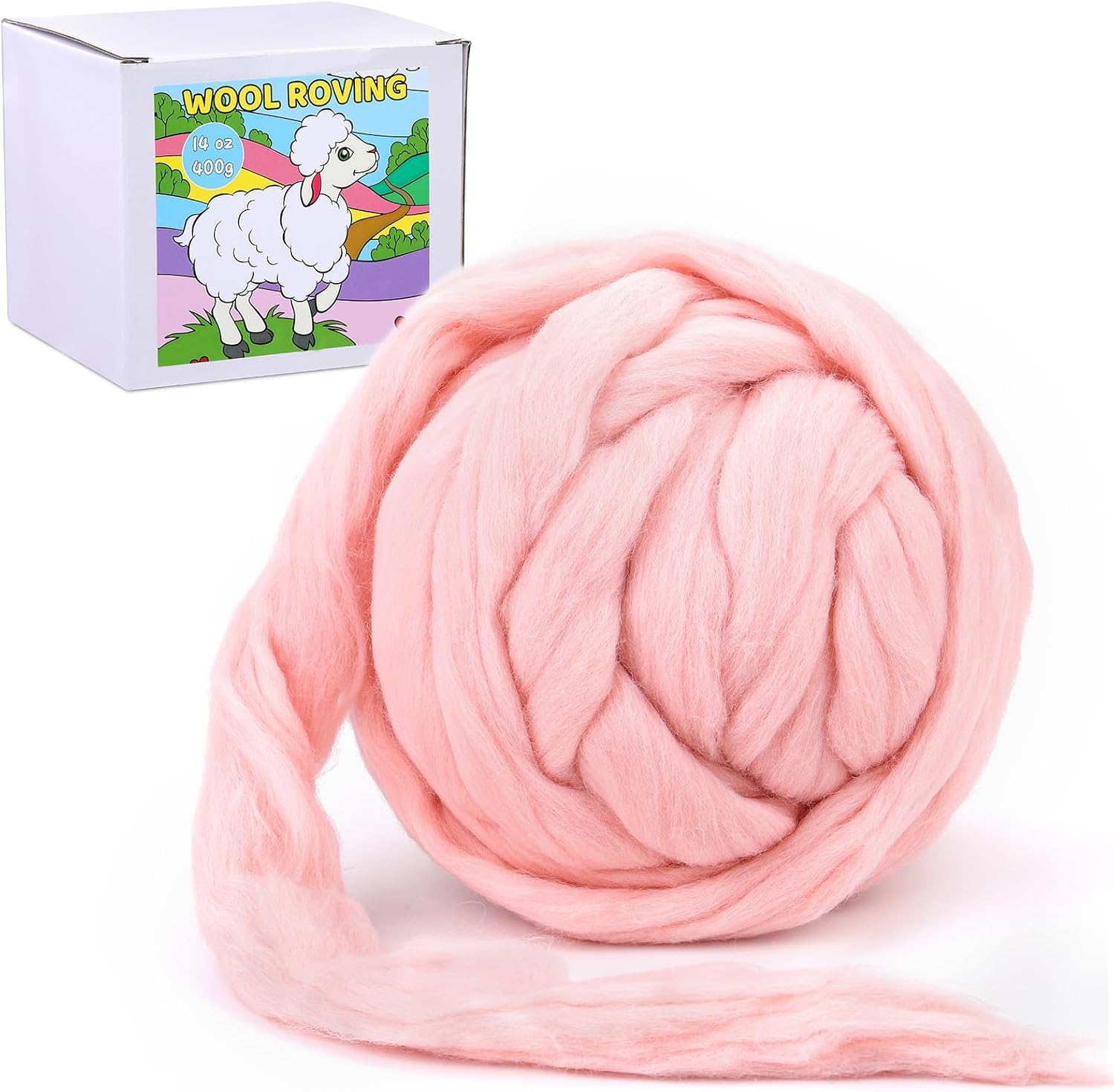 QMNNMA 14.1oz Wool Roving Yarn, Fiber Roving Wool Top, Felting Supplies, Chunky Yarn, Handmade Carded Core Wool for Wet Felting DIY Hand Spinning