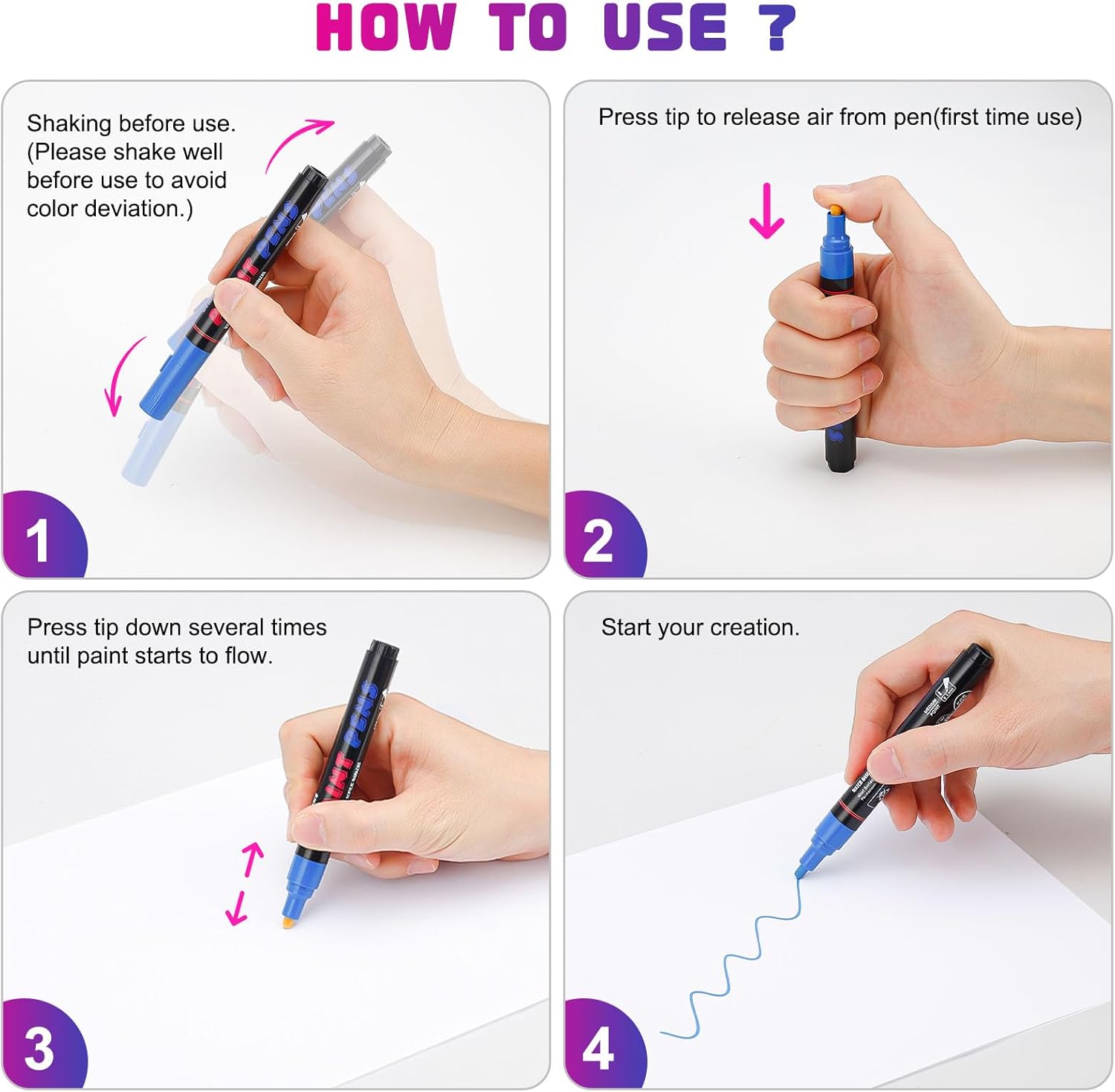 - Vibrant and Versatile Colors: Our Permanent Paint Marker Pens offer an extensive range of bright and vivid colors, ensuring your artistic creations truly pop and come to life. Whether you're working on rock painting, metal marking, wood engraving, or fabric art, our markers provide a stunning color palette to fuel your imagination.