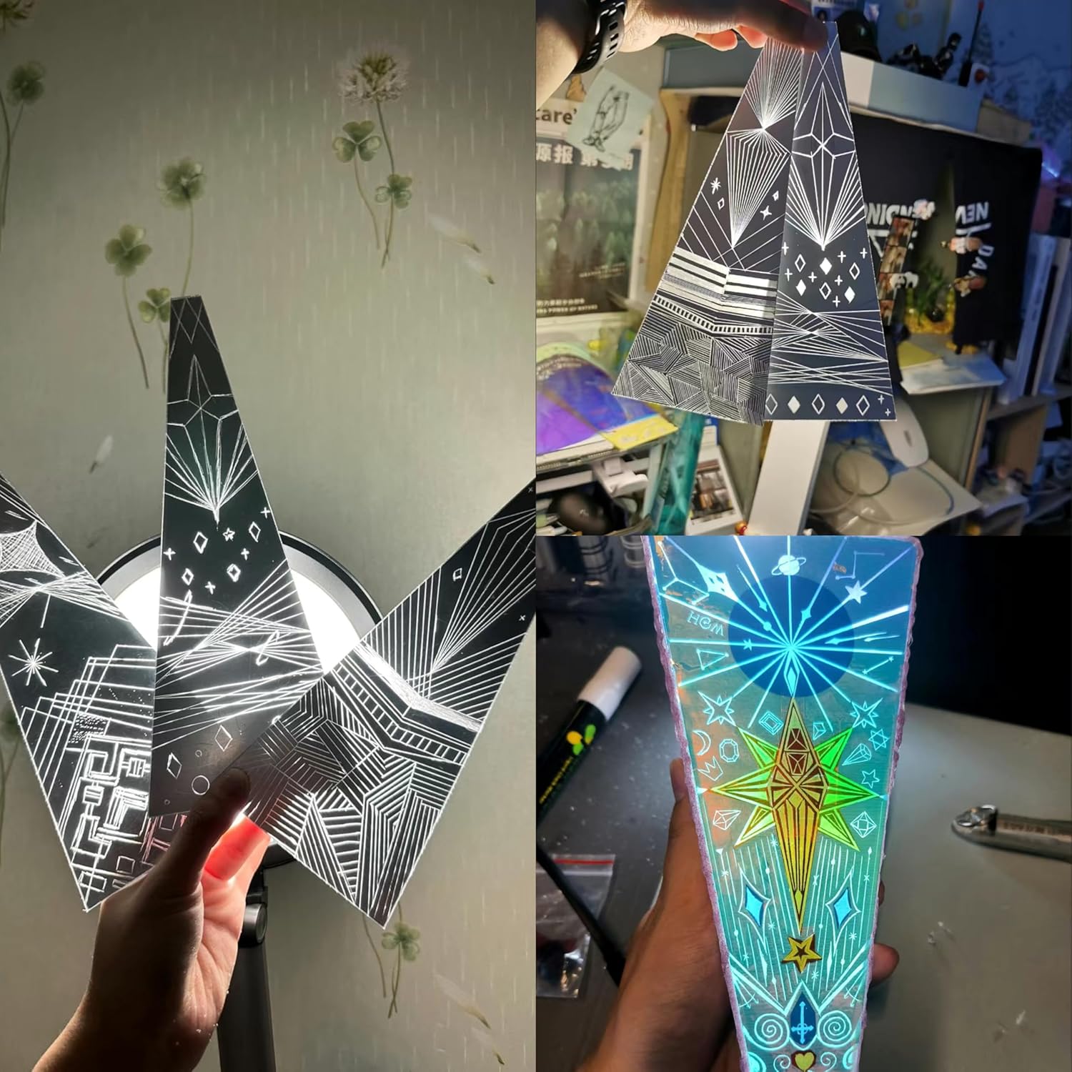 - [DIY Kaleidoscope Craft Kit]: This DIY kaleidoscope craft kit contains materials that allow you to extend your creativity infinitely. It is equipped with a ruler, a variety of pattern molds, two glue sticks, a safety-designed automatic rebound knife, transparent tape, and a cube sun catcher to ensure that the creation process is both convenient and safe. In addition, the kit also includes one dazzling color-changing laser papers and three acrylic lenses,Waiting for your wonderful ideas