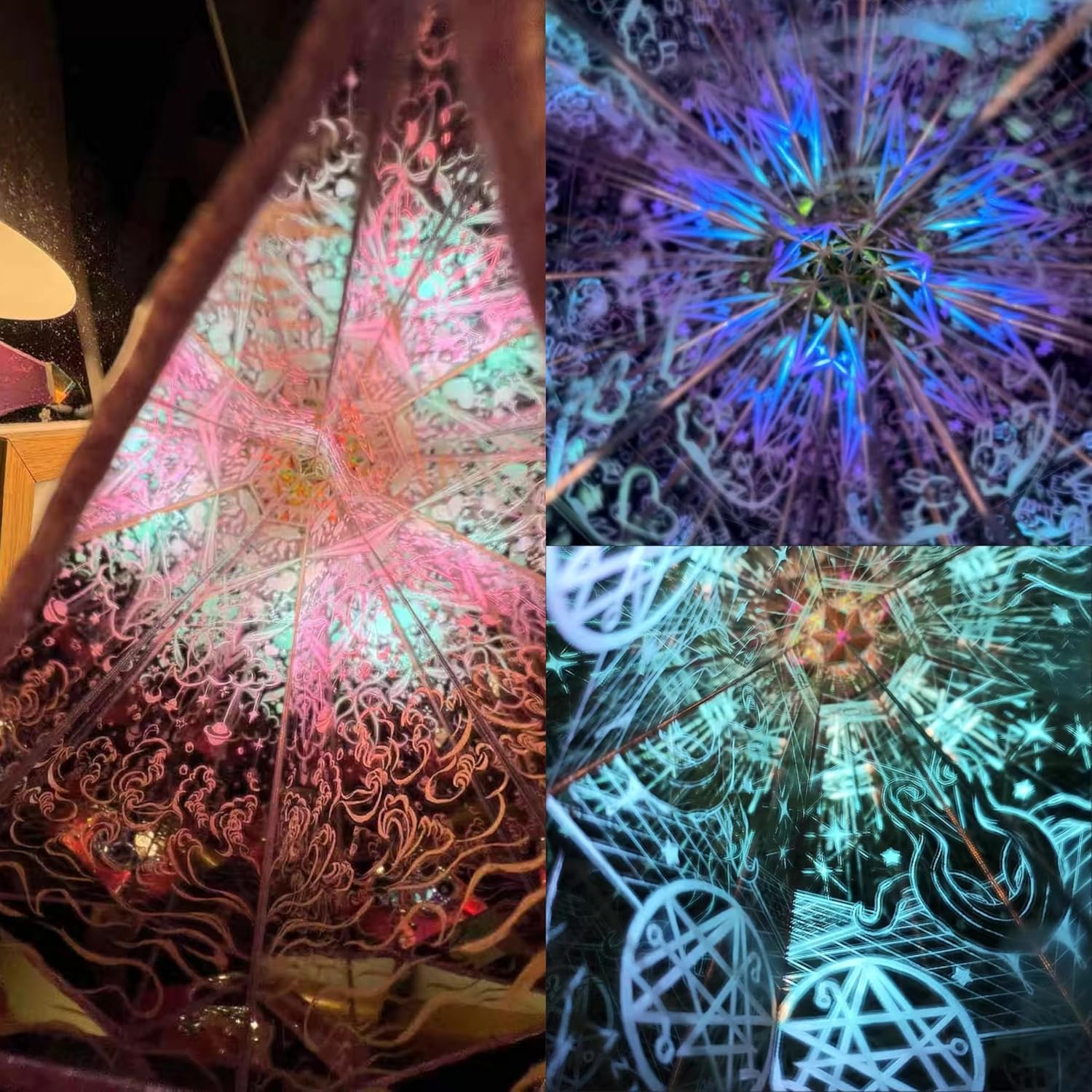 - [Different DIY design solutions]:You may design and paste different mirrors or color-changing glass,or cleverly arrange colored transparent beads on the kaleidoscope to make the light more diverse.Such personalized additions will definitely bring an unexpected visual feast.After the production is completed,you can use a flashlight or natural light to shine on the top or side of the kaleidoscope,and move the words on it,and you can see the dreamy and gorgeous kaleidoscope world