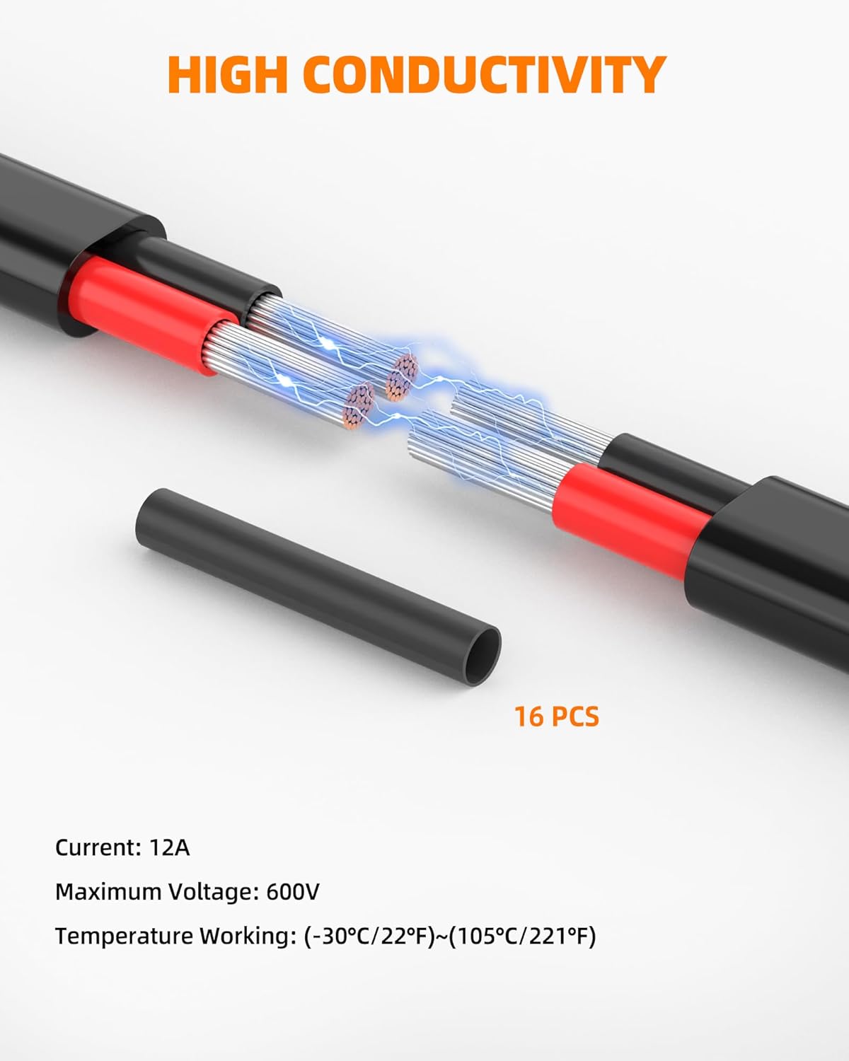 - RELIABLE PERFORMANCE: 12 AWG wire Waterproof level: IP68; Flame retardant rating: VW-1; Rated voltage: 600V, with compatibility for 5V, 12V, and 24V up to 600V applications; Operating temperature: -30°F to 221°F