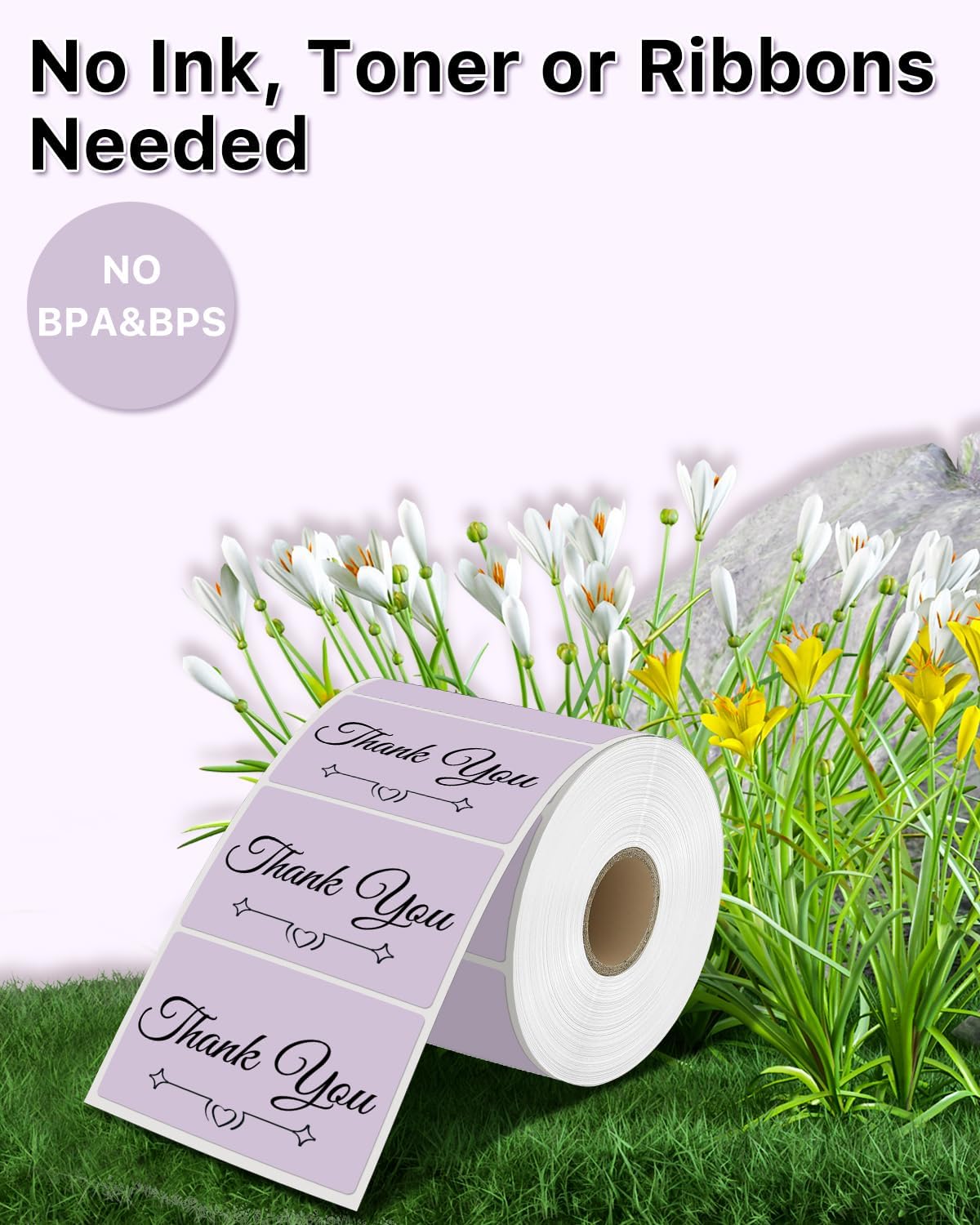 - Specifications: iEager 3" x 2" purple thermal label with perforation line, 500 labels/roll. Paper tube inner diameter 1". No ink, toner or ribbons needed