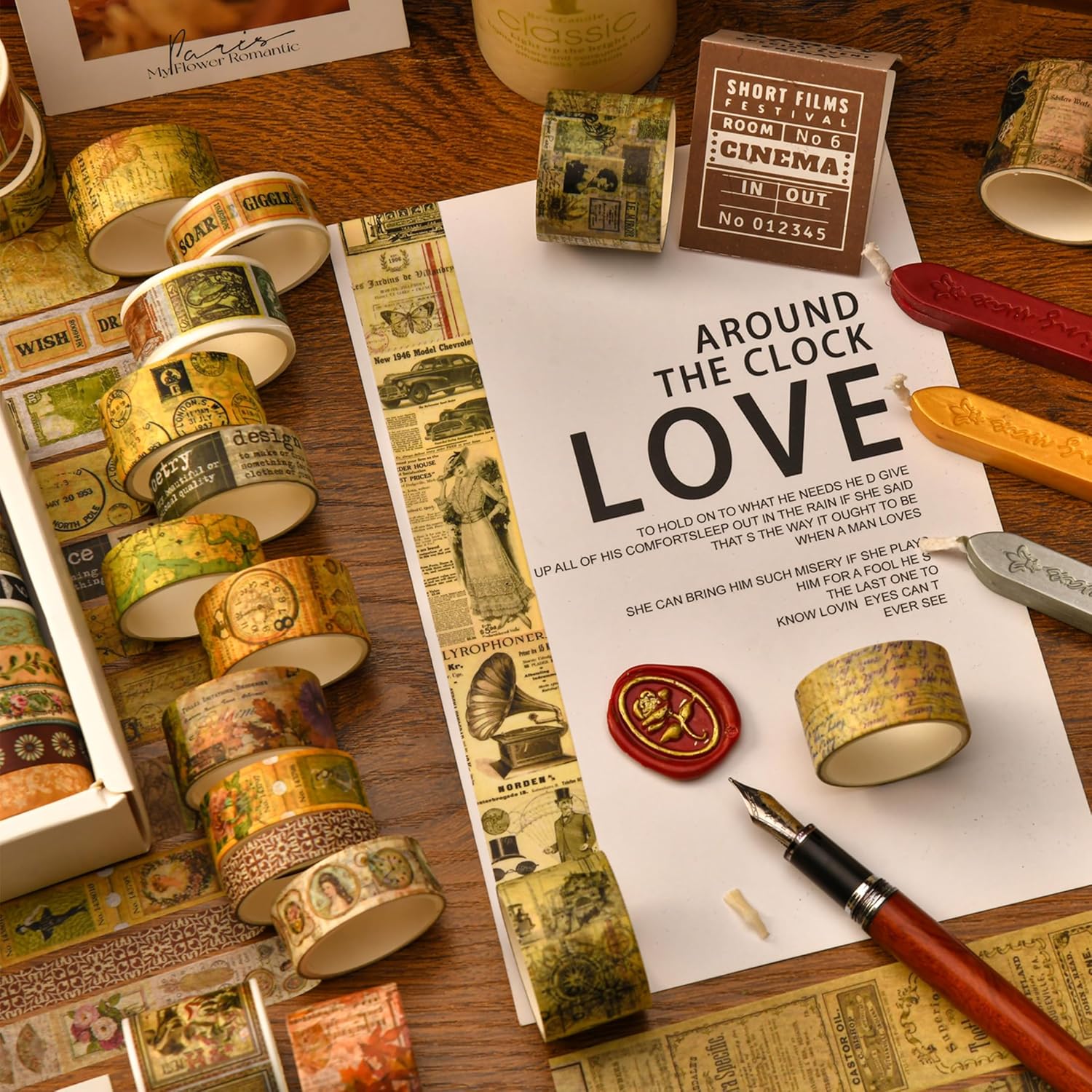 - 👍【CLASSIC ART DESIGN】This washi tape has a strong retro style, featuring a yellowed base color adorned with meticulously designed vintage patterns such as stamps, newspapers, specimens of flora and fauna, building Notes and manuscripts. It takes you back several decades, allowing you to experience the bygone era
