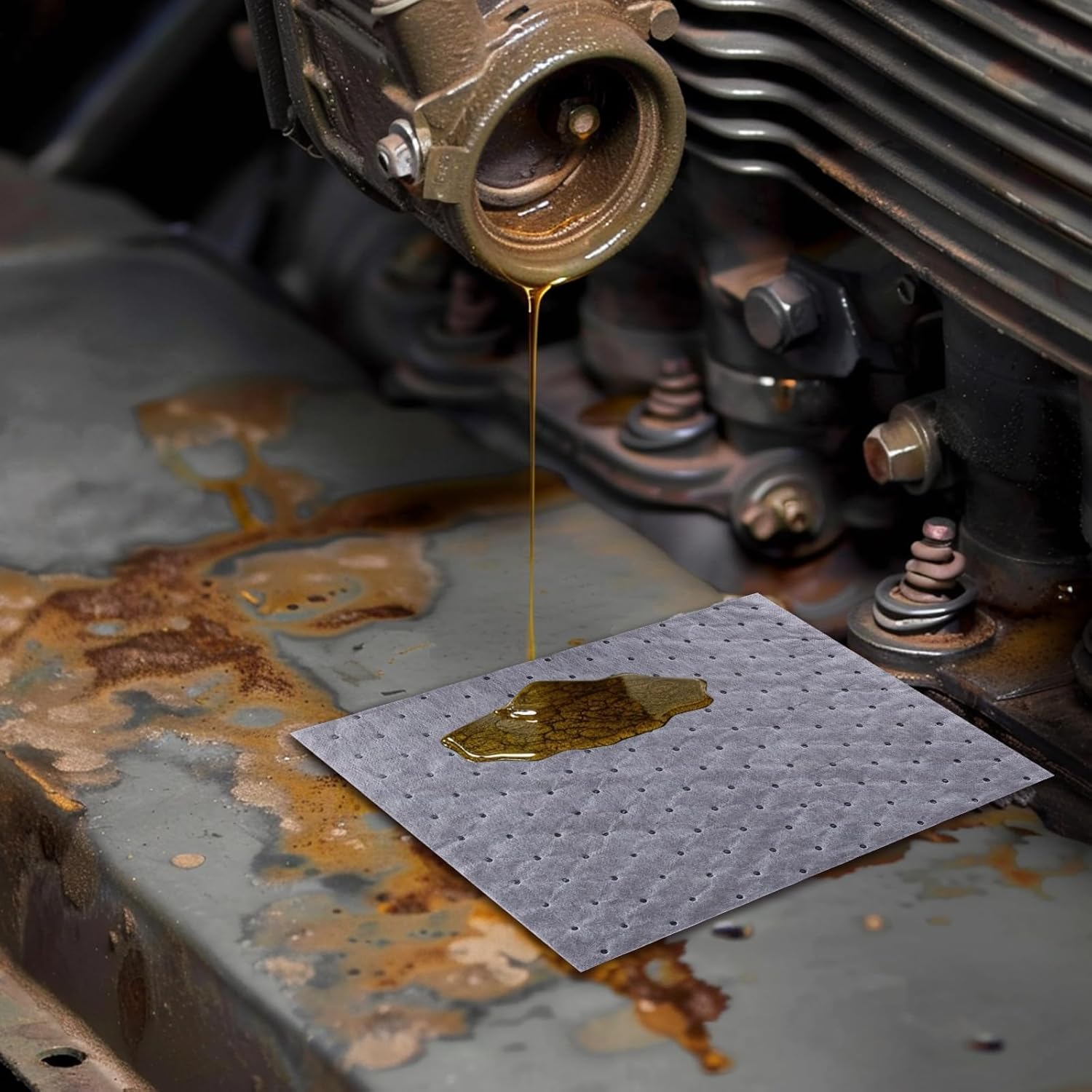 - INSTANT WALL-MOUNTED SPILL CONTROL - Each of the 5 packs includes strong adhesive hooks - hang these oil absorbent pads vertically on tool chests, garage walls, or under shelves for one-handed access during messy repairs