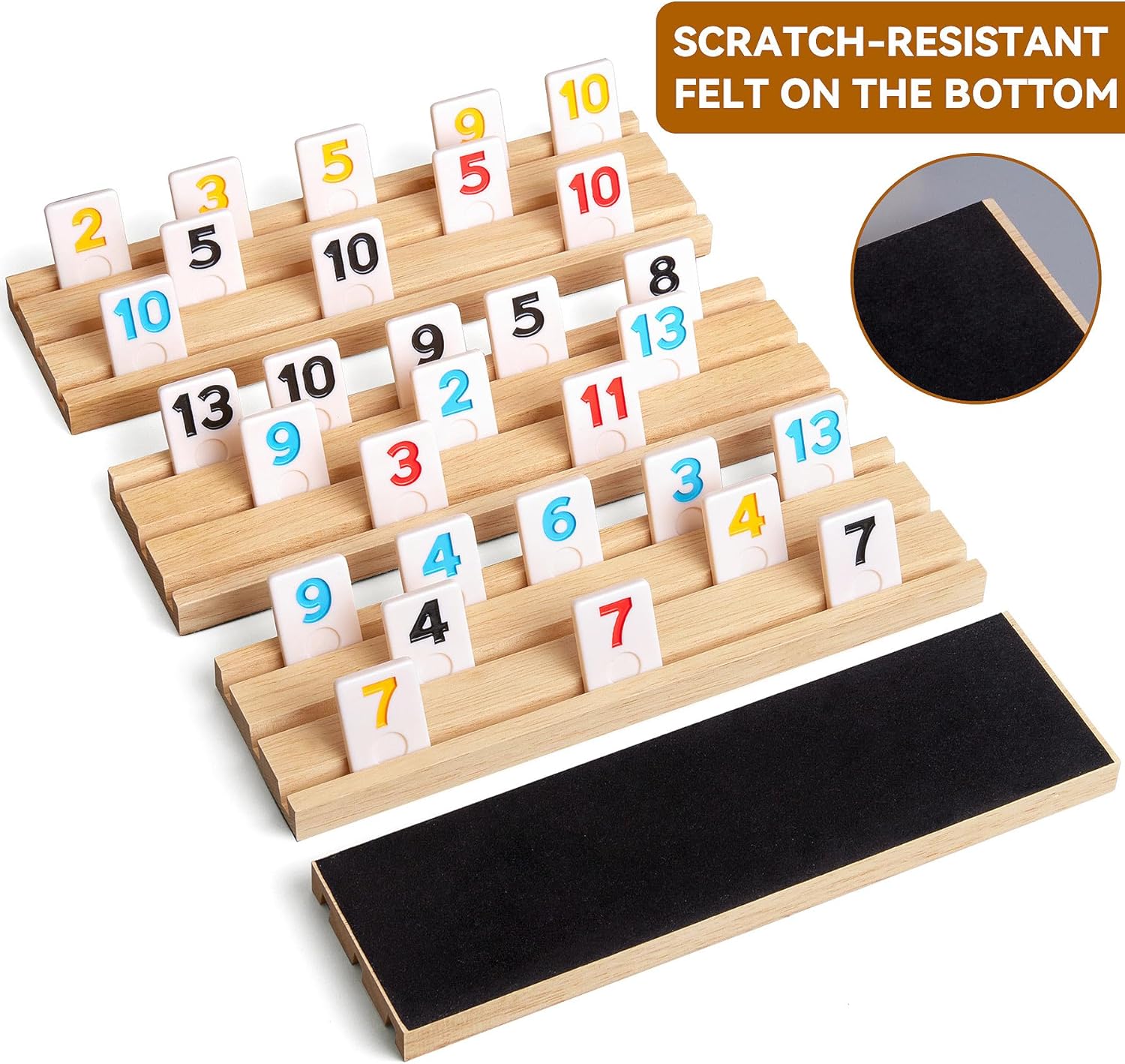 - 4 Wooden Racks: Includes 4 well-crafted wooden racks; the bottom is lined with felt to ensure stability and quietness during the game. Comfortable to the touch without burrs, durable