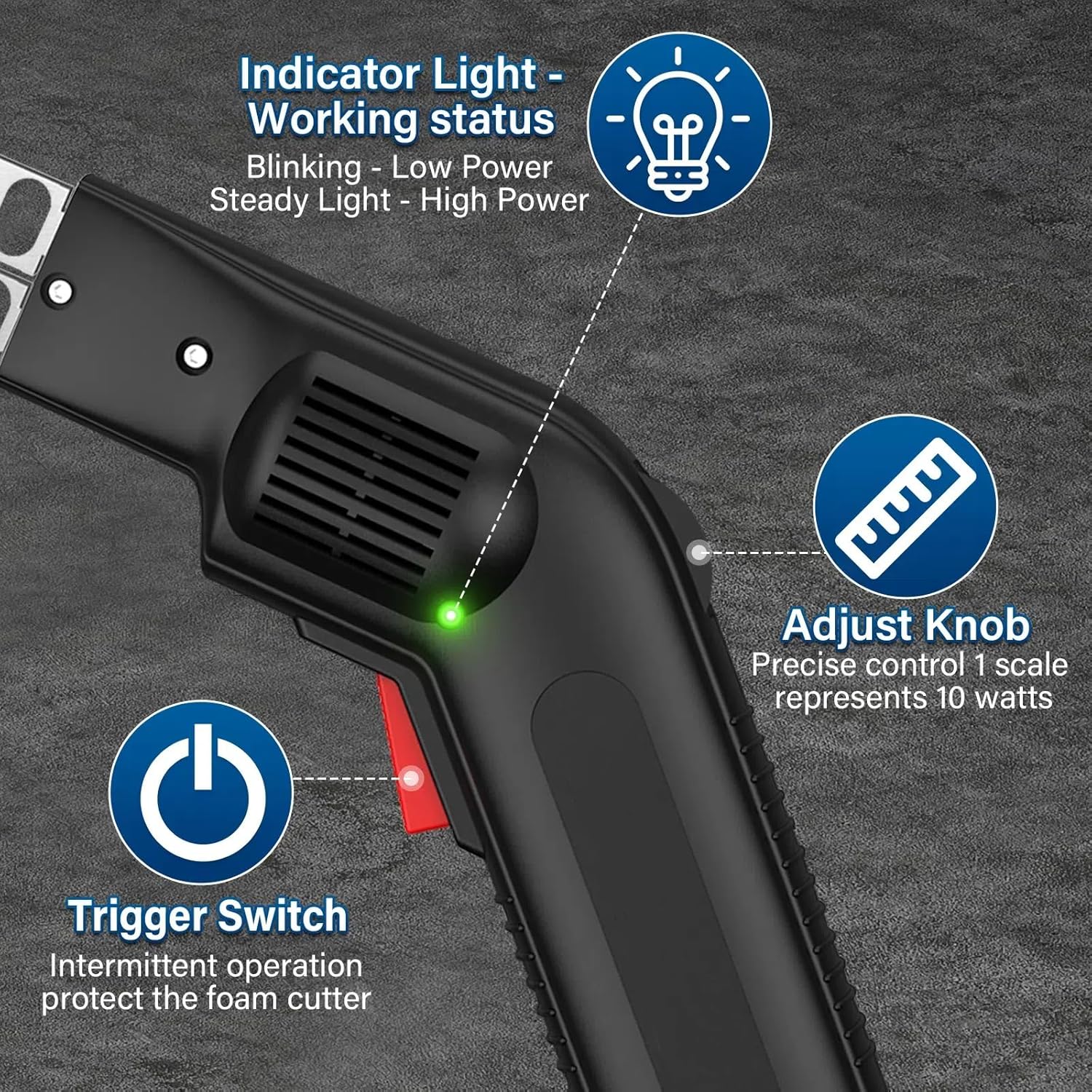 - 【OVERHEAT PROTECTION MORE SAFER】Built-in chip, our electric foam cutter has overheat protection. This feature activates when the cutter encounters a short circuit, or when the blade contacts metal, the indicator light will flash and then go out. Once the chip temperature drops below 80℃, the cutter can be safely powered on and used as usual.
