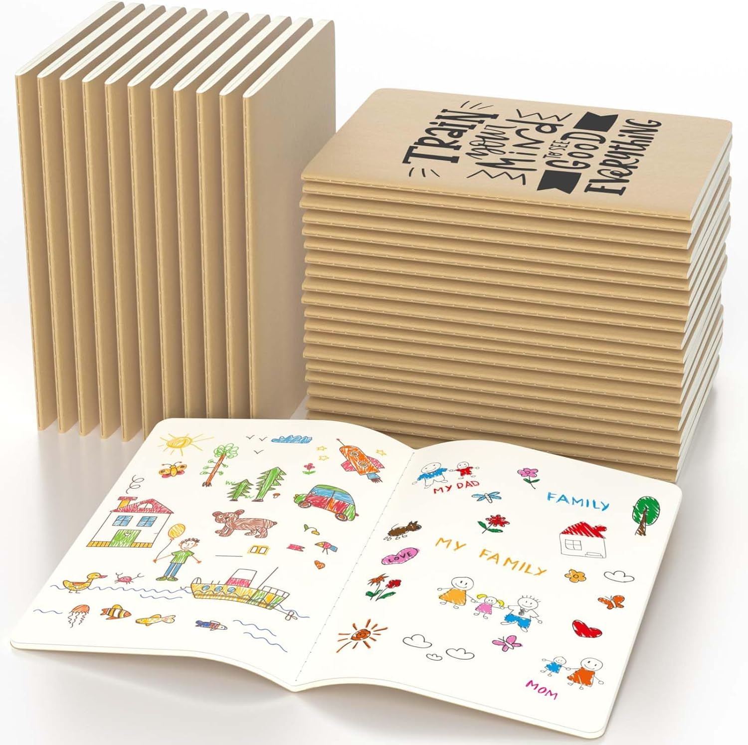 Oucaru Journaling Notebooks A5 Notebook college Blank Sketch Book 32 Pack Small Kraft Notebooks Bulk 8.3x5.5 Inches, Brown Drawing Notebook Soft Cover Steno Pads School Supplies