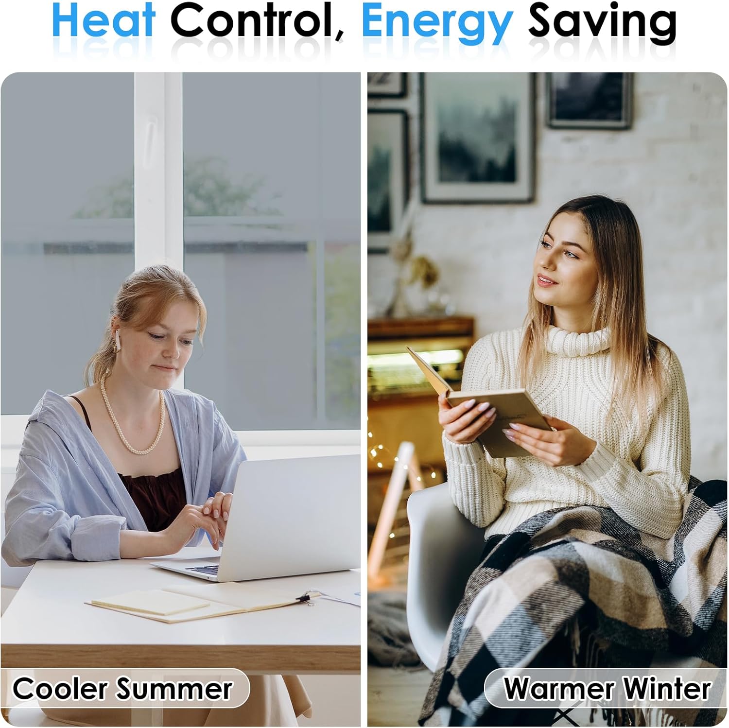 - Heat Blocking & Energy Saving: Reflective window privacy film features a metallic coating that efficiently reflects solar radiation, moderately reducing heat build-up and enhancing comfort. This also lowers energy consumption and electricity costs for air-conditioning during summer