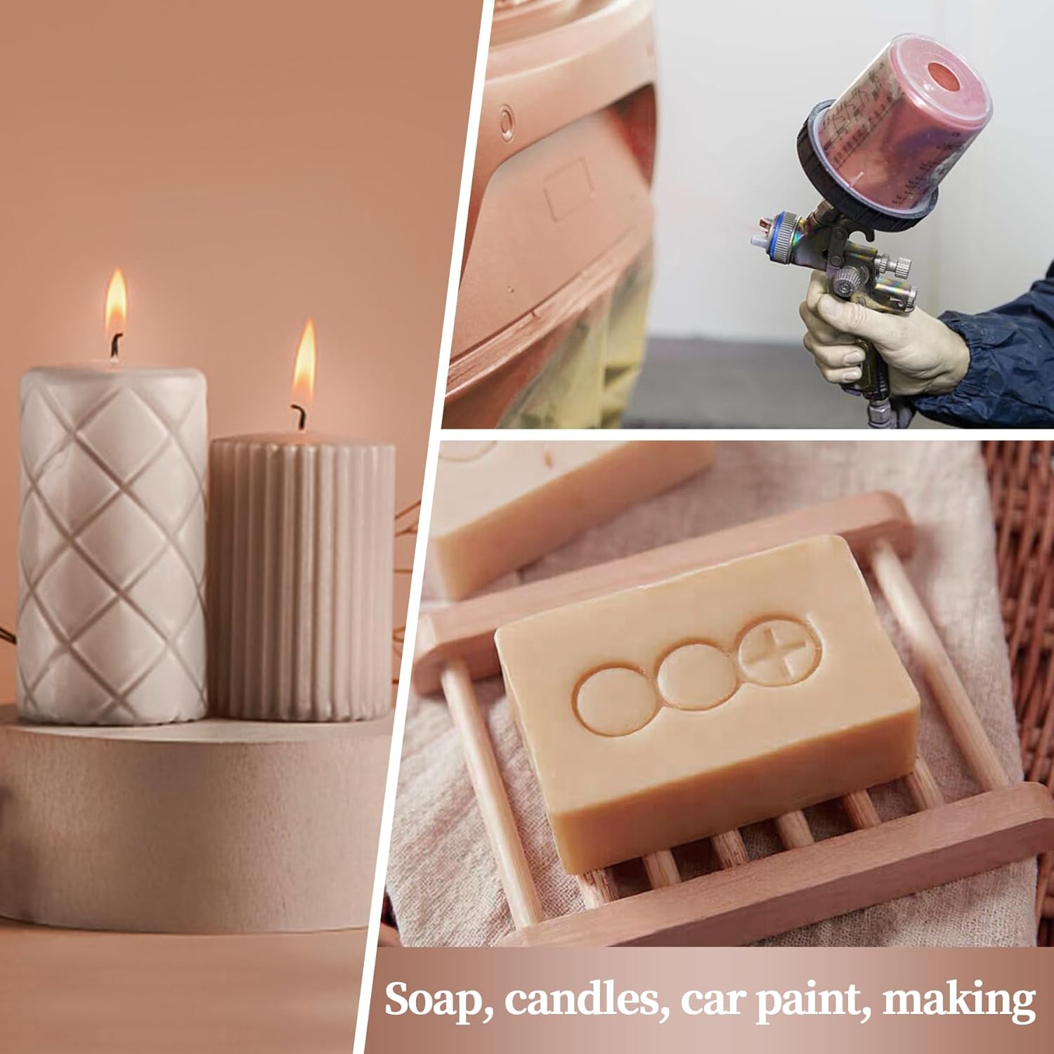 - Large Jar:Premium quality Flesh colored mica powder in large 50g/1.7oz.jar. Perfect quantity & quality mica powder for soap making. The jar lid precise control of usage of the epoxy color pigment.