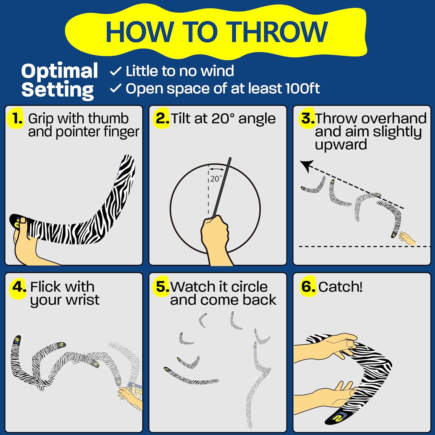 - ๐๐ฎ๐๐ ๐ง๐ผ ๐๐ฒ๐ฎ๐ฟ๐ป - Embrace the simple joy of throwing a boomerang and having it come back to you with ease. With our beginner-friendly easy to throw design crafted from durable EVA foam. It's stable flight and comfortable grip make throwing and catching a breeze, ensuring a quick and enjoyable learning experience for ages 12 and up.