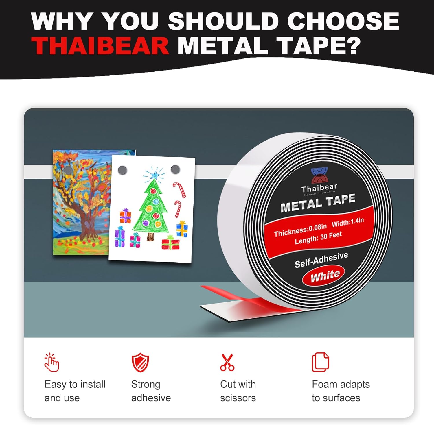 - HIGH QUALITY AFTER-SALE SERVICE: our team will provide you with extensive advice and support. Your customer satisfaction is our first priority. If you have any questions, please feel free to contact us, and we will do our best to meet you. Tips๏ผThe Thaibear metal tape is the counterpart to our magnetic tapes and magnetic strips. The metal tape itself is not a magnetic