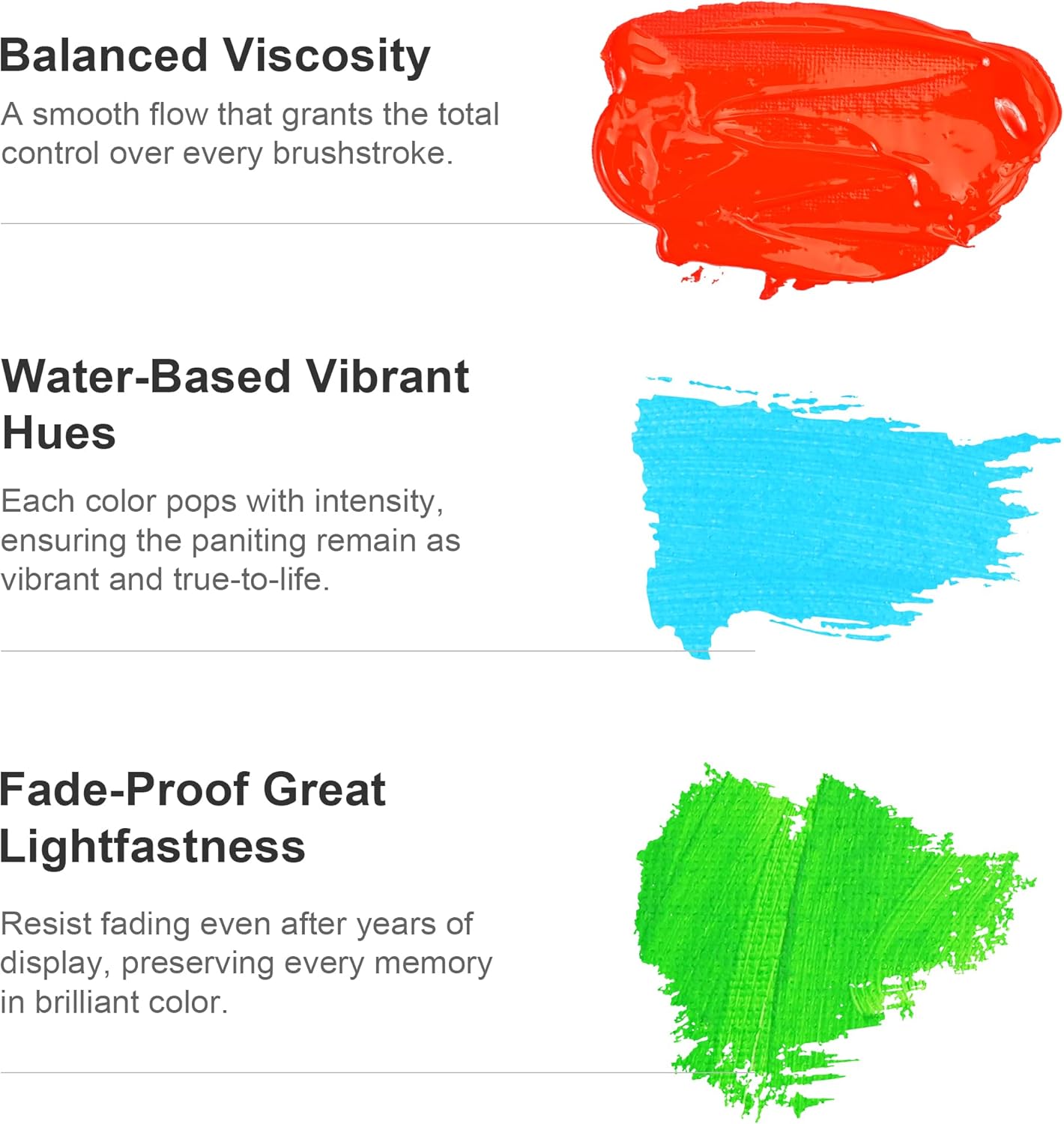 - 【Great Mixability】Boasting vibrant hues and a smooth, fluid texture, our water-based acrylic paint seamlessly blends with other acrylic colors & mediums. Its rapid-drying formula enables you to layer and refine your masterpiece with intricate details in a flash.