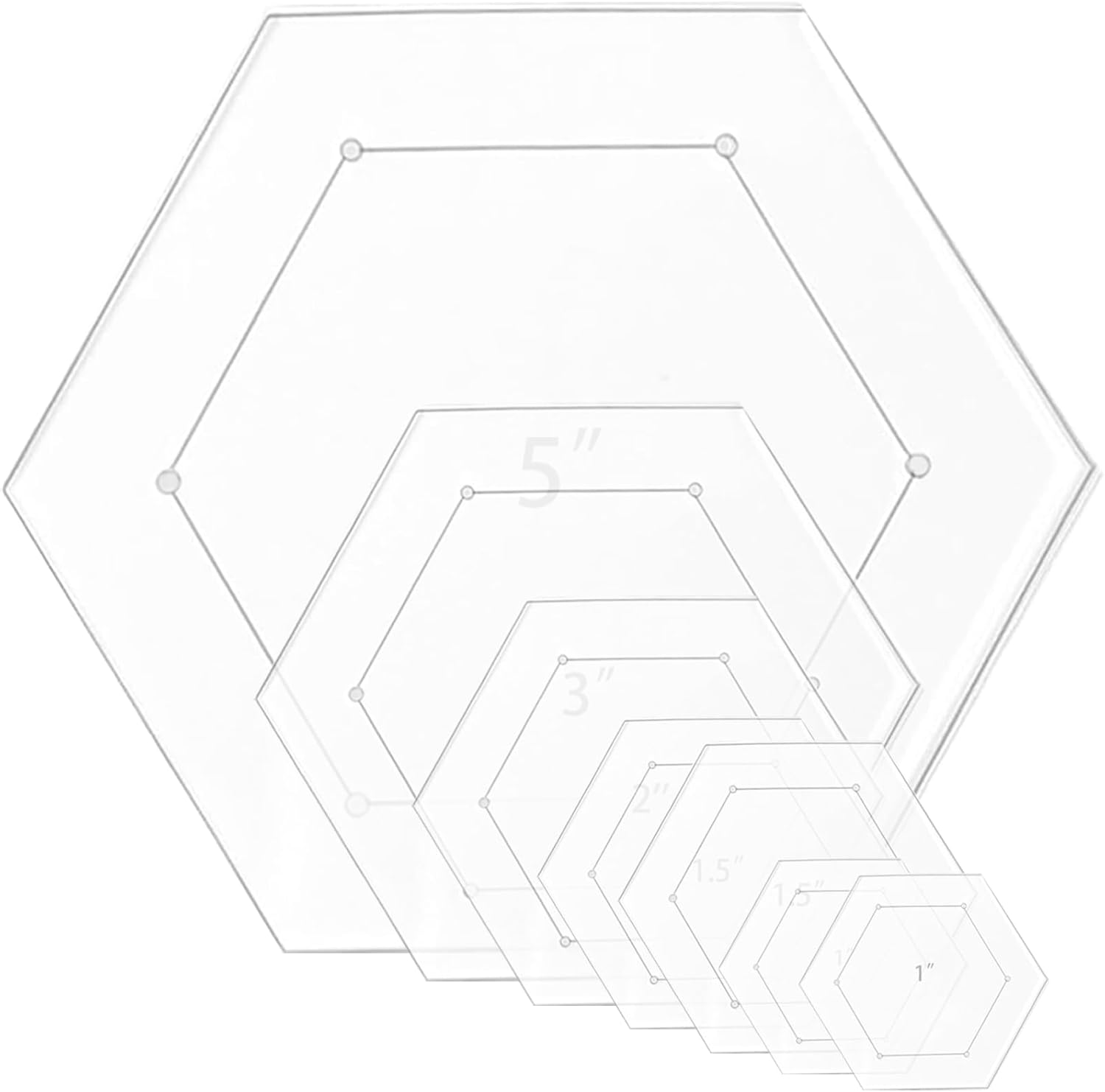 - Package include: You will receive 7 pieces hexagon quilting template with 1/4 inch seam allowance including 1inch*2, 1.5 inch*2, 2 Inch, 3 Inch, 5 Inch.
