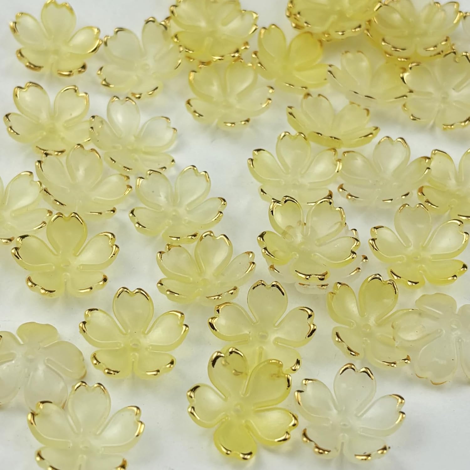 100pcs Acrylic Flower Beads, 19mm Cherry Blossom Plastic Gradient Flower Spacer Beads for DIY Crafts Bracelet Necklace Earrings Jewelry Making(Yellow)