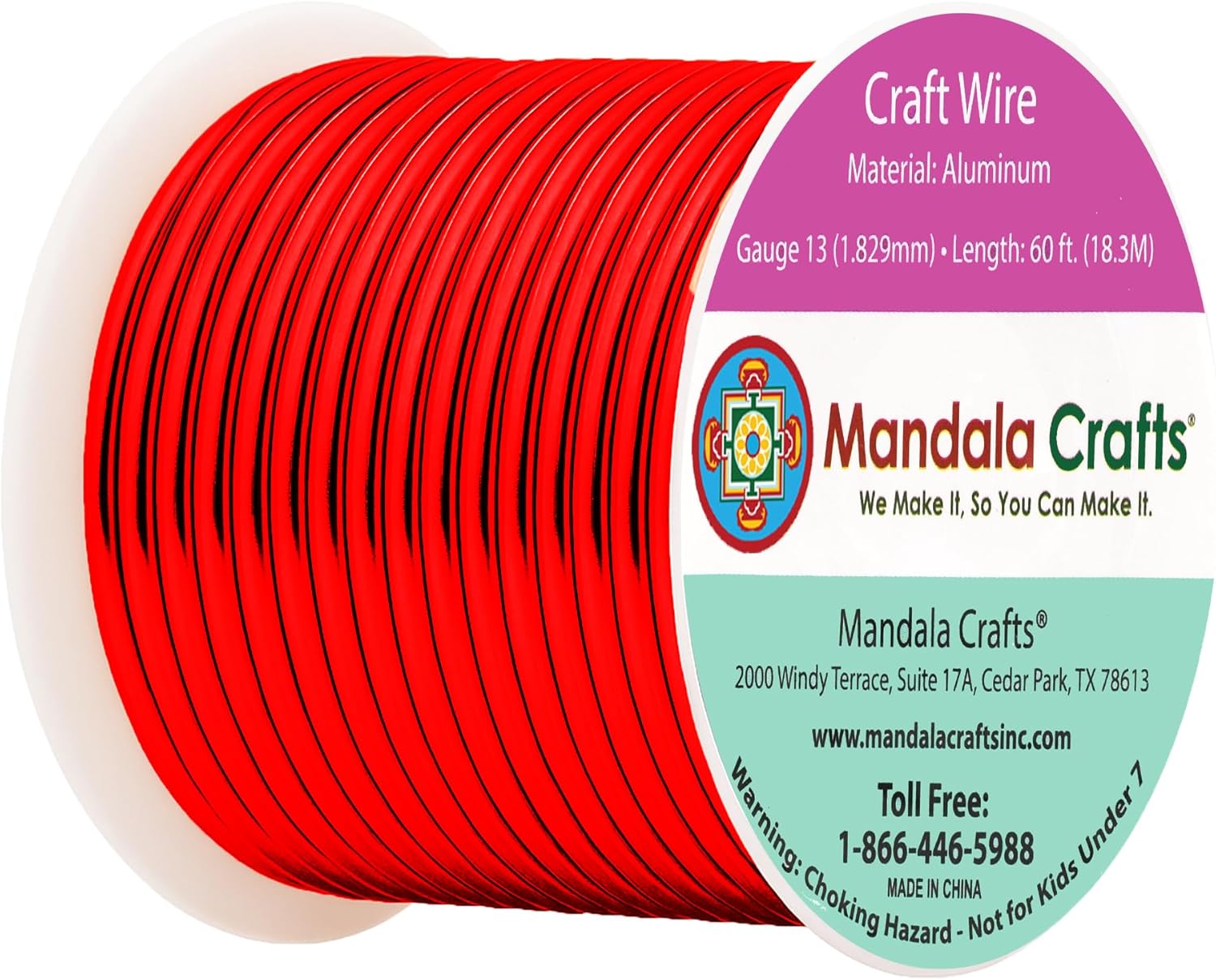 Mandala Crafts 13 Gauge Anodized Aluminum Craft Wire for Jewelry Making - 60 FT Colored Flexible Red Wire - Bendable for Bonsai Armature Crafting Sculpting