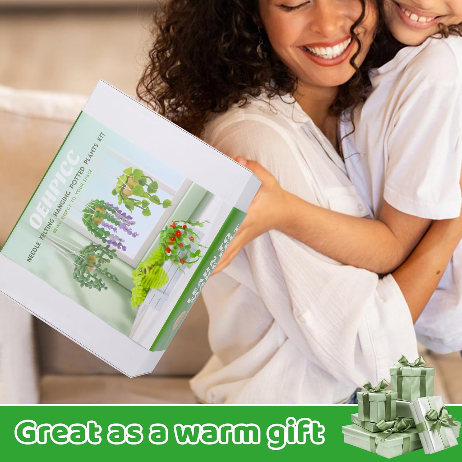 OEHPICC Needle Felting Kit, 5 Pack Hanging Plants Needle Felt Beginner Kit, Including Basic Felting Tools, Instructions, Felt Craft Kit for Indoor Outdoor Office and Home Decor
