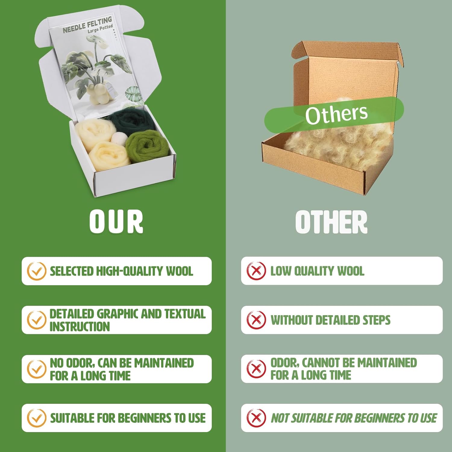 OEHPICC Needle Felting Kit for Beginners, Monstera Potted Plant Felt Kit, Wool Felting Kit with Felting Needles, Felting Pad and Instructions, Perfect for Office Indoor Greenery Present Idea