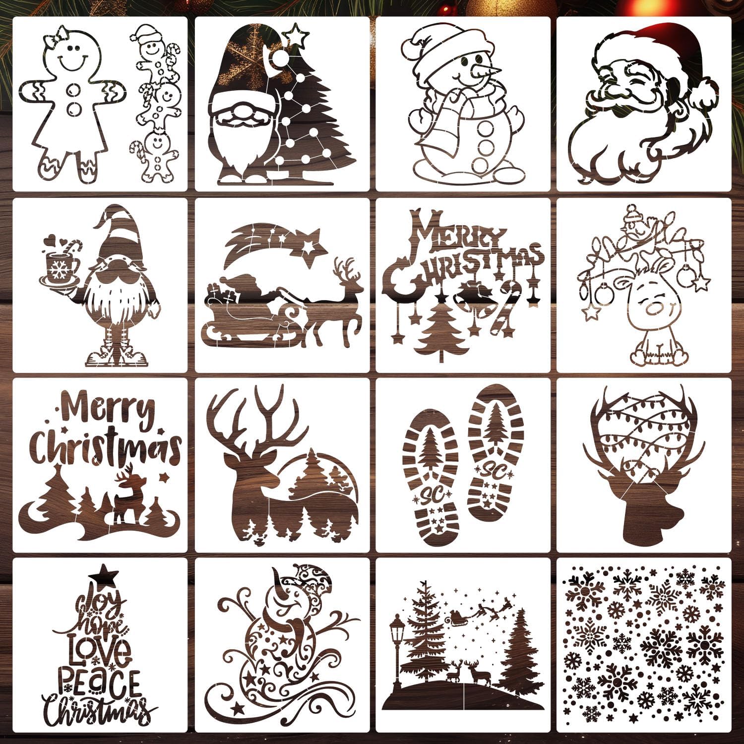 - Package Includes:16pcs large Christmas stencils for painting on wood ,every Christmas stencils for crafts is 8x8inch.