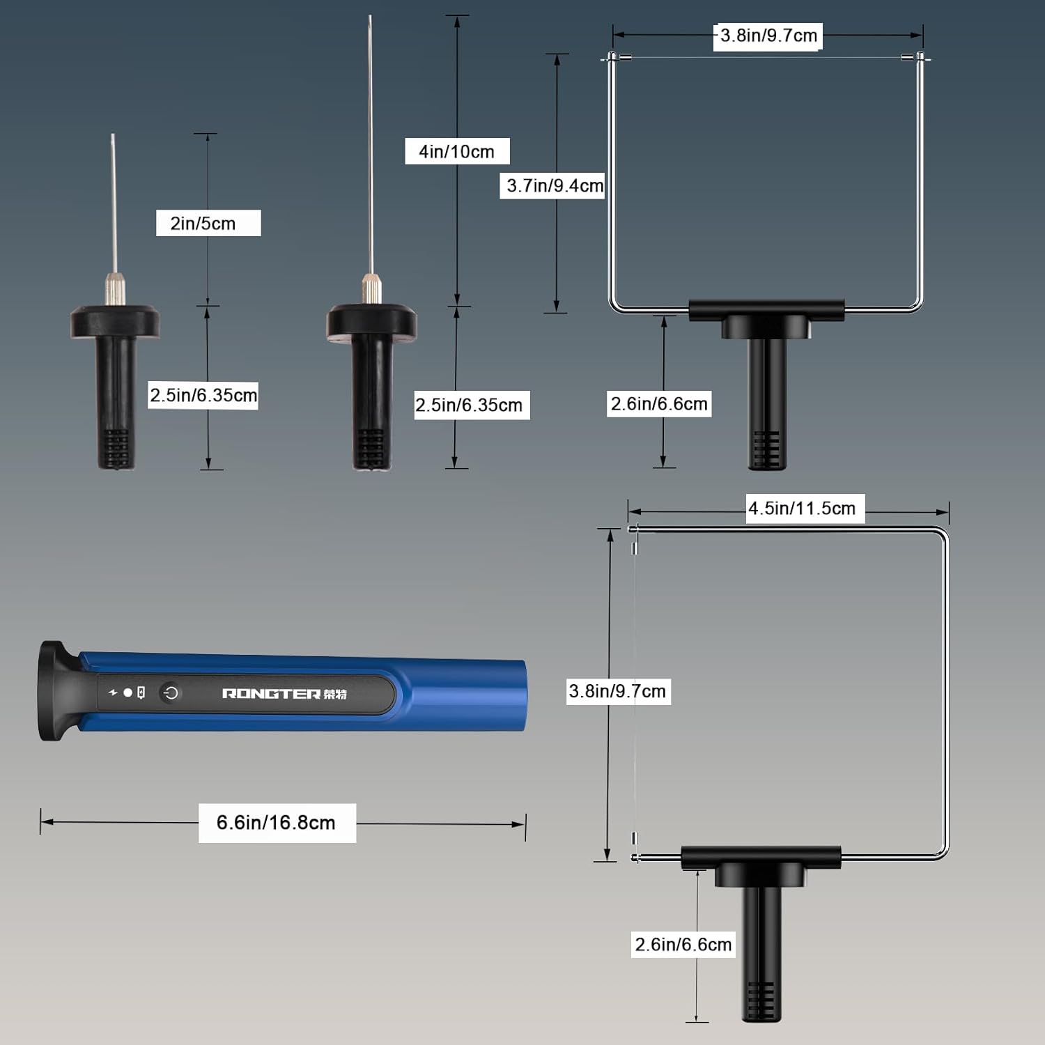 - 【Easy to Use】Rongter 4 in 1 electric styrofoam cutting tool comes with a metal support frame for resting the heated tip, so you don't worry about where to rest it when you want a break from your work. After it cools down, please wipe the heating needle with copper brush to avoid blackening and hardening caused
