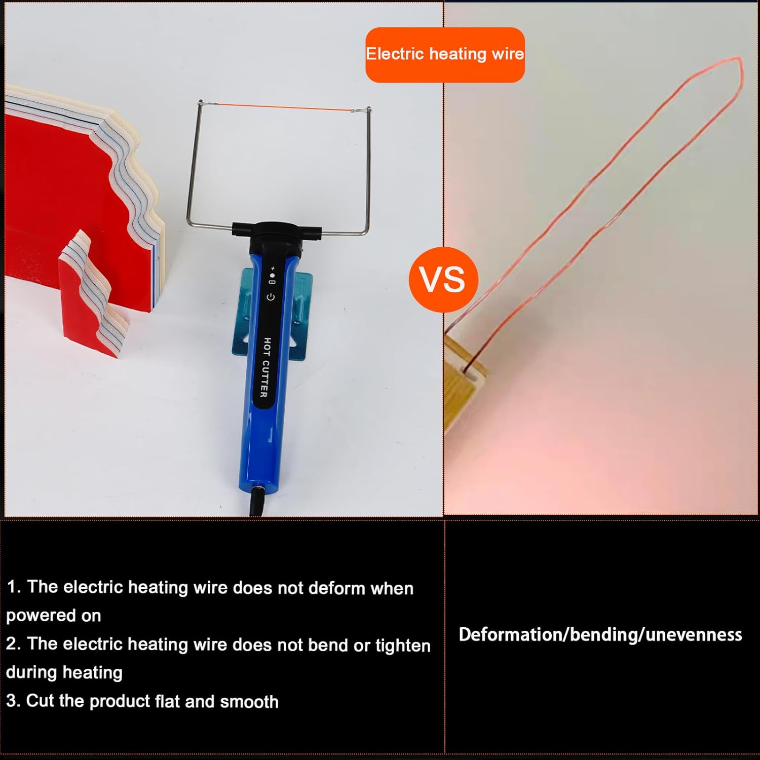 - 【Smooth and Efficient Cutting】Rongter hot wire foam cutter is FCC certified, heats up faster and more evenly than normal electric heating pens, The U-shaped and F-shaped tip can be heated up to 842℉/450℃ during use, and the 2in/4in tip can be heated up to 350℃. The hot wire cutting pen can cut foam block from any angle smoothly and efficiently just like butter, seals the edges clearly, and eaves No Debris