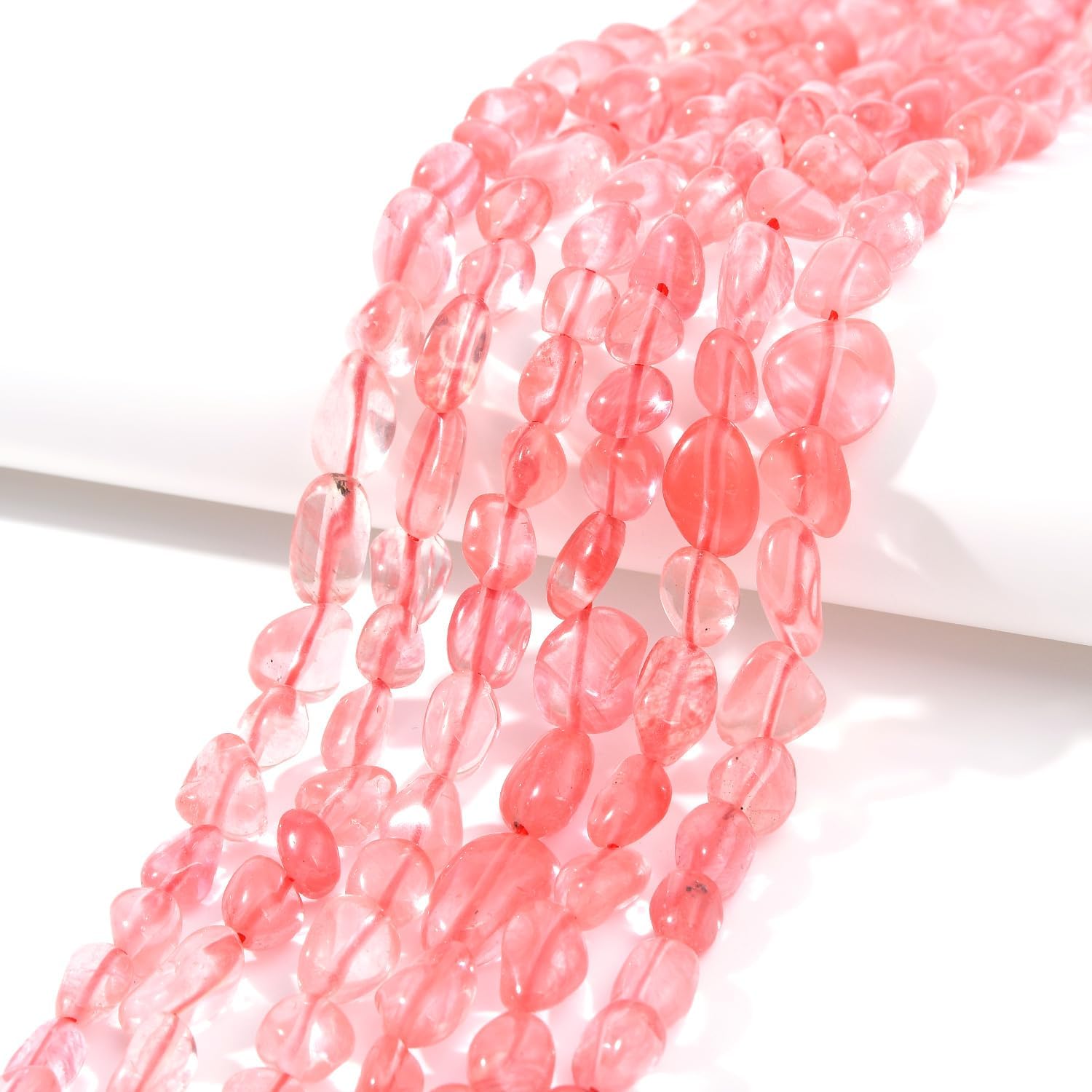 - Quantites:6-8mm Cherry Quartz Tumbled Stone Beads with Hole Drilled:No clasp. Hole size 1.0mm;1 Strand Approx (15.5 Inches/Strand 50pcs)