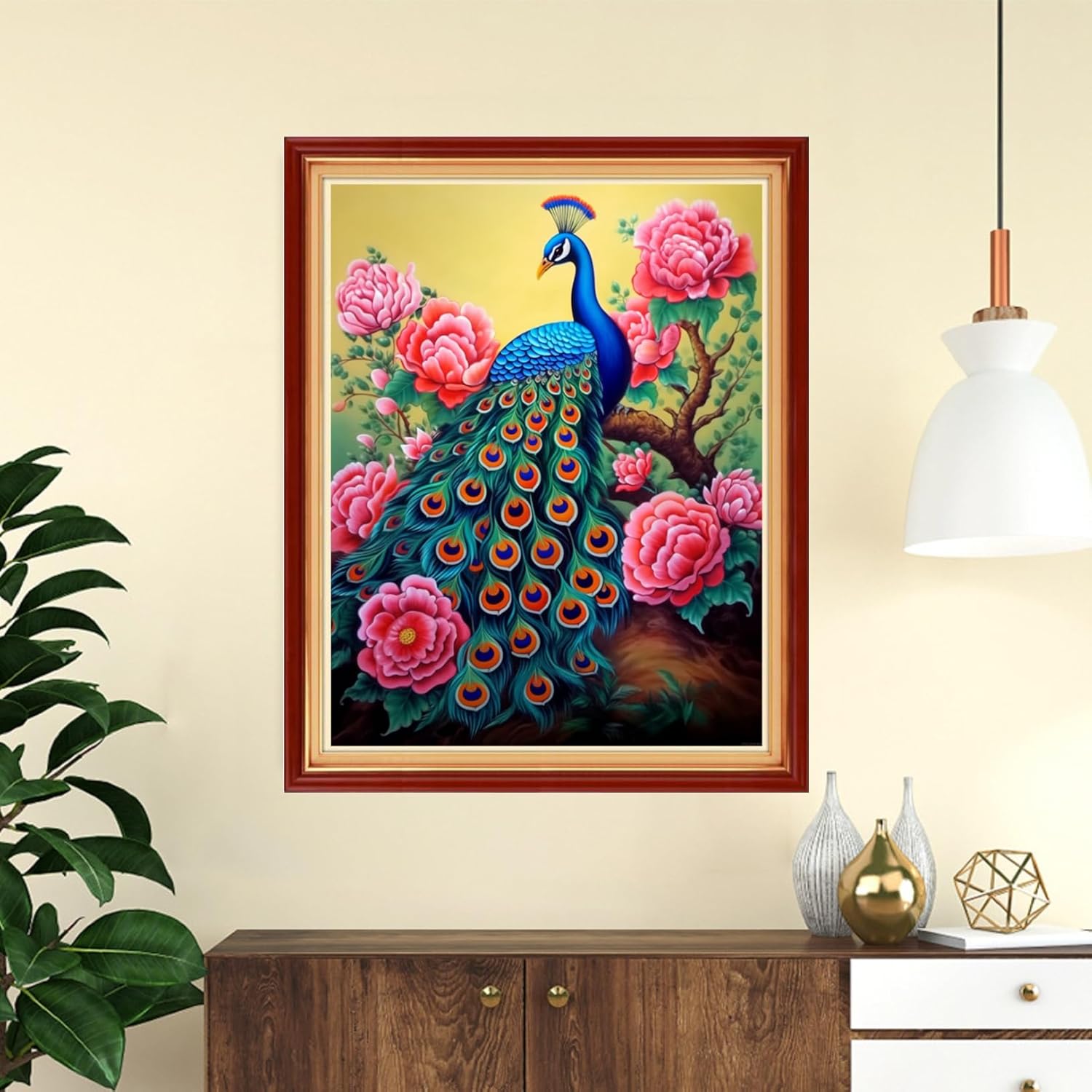 Funchey Stamped Cross Stitch Kits, DIY Cross Stitch Pattern for Adults Beginners Needlepoint Kits Embroidery Kit Arts and Crafts 11CT-Peacock Flowers 16x20 inch