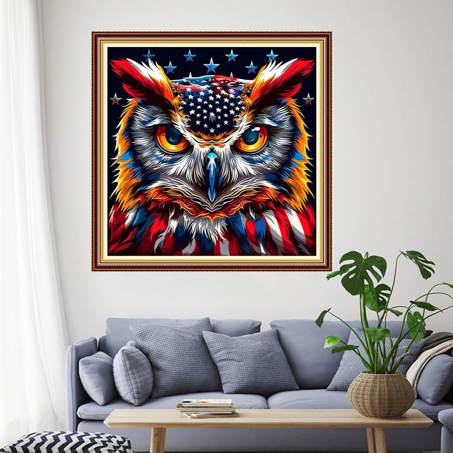 Funchey Stamped Cross Stitch Kits, DIY Cross Stitch Pattern for Adults Beginners Needlepoint Kits Embroidery Kit Arts and Crafts 11CT-National Flag Owl 18x18 inchs