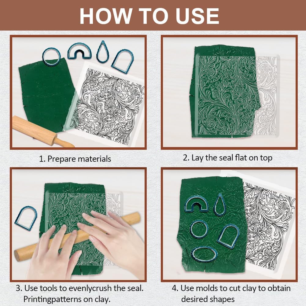 - How to Use: Simply put the polymer clay stencils on and roll it to get a clear dimensional texture, then use with water-based acrylic paint for coloring, easily get the amazing effect.