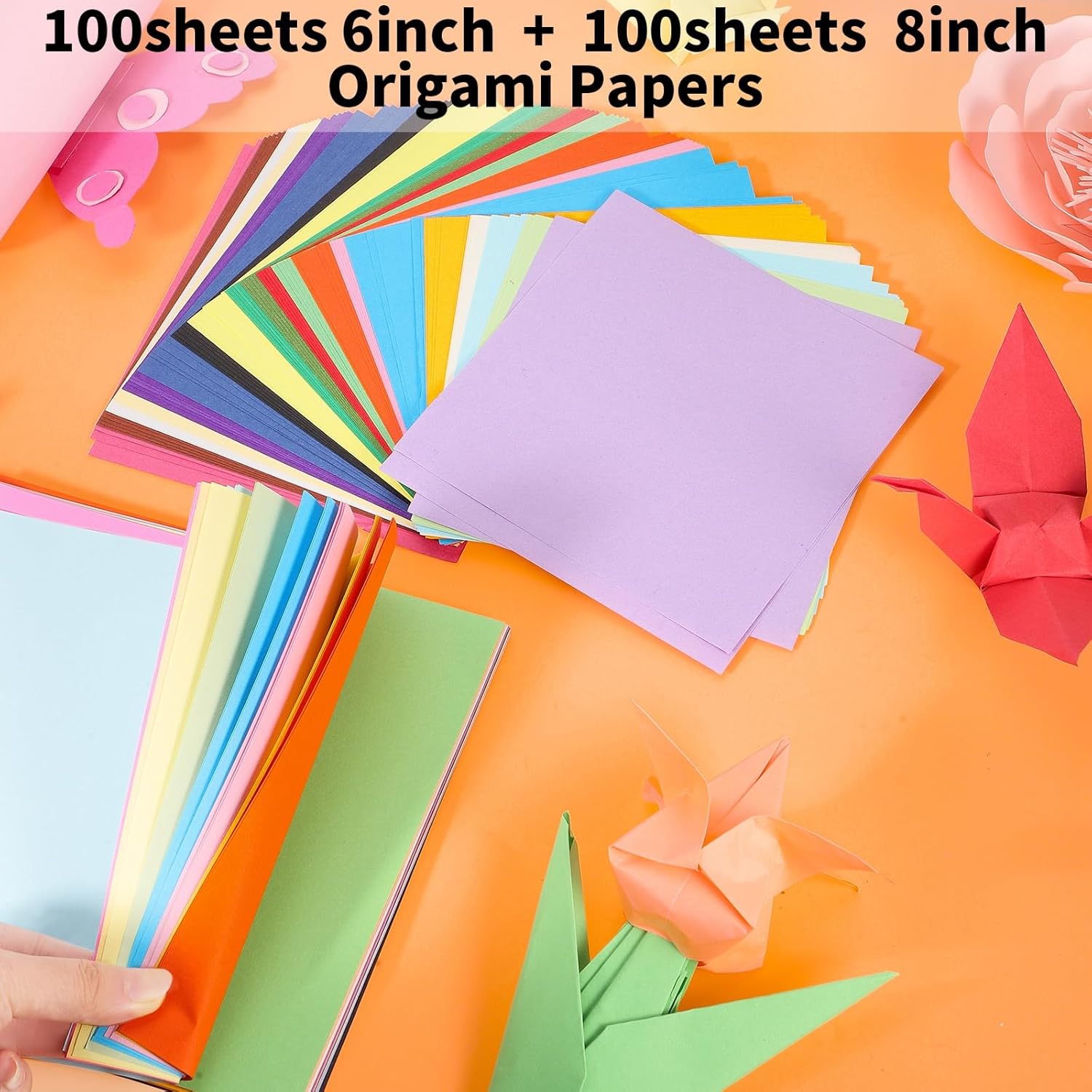 Square Origami Paper, 200 Sheets, 20 Colors Origami Kit for Kids Ages 8-12, Double Sided Colored Paper Folding Paper Origami Paper for Crafts(100 pcs of 6×6in & 100pcs of 8×8in)