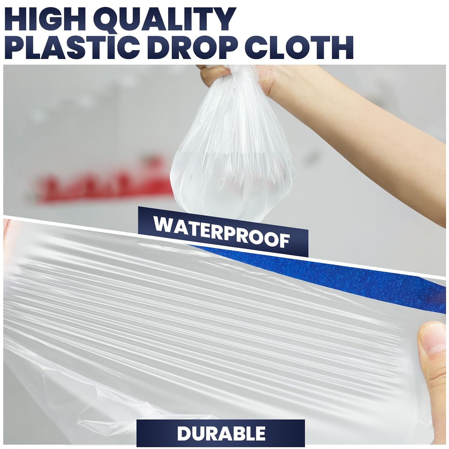 - Durable and Tear-Resistant: Made from 0.5 mil-thick, high-density, chemical-grade polyethylene material, the tape and drape is waterproof, oil-proof, and tear-resistant, providing long-lasting protection against dust, paint, and debris.