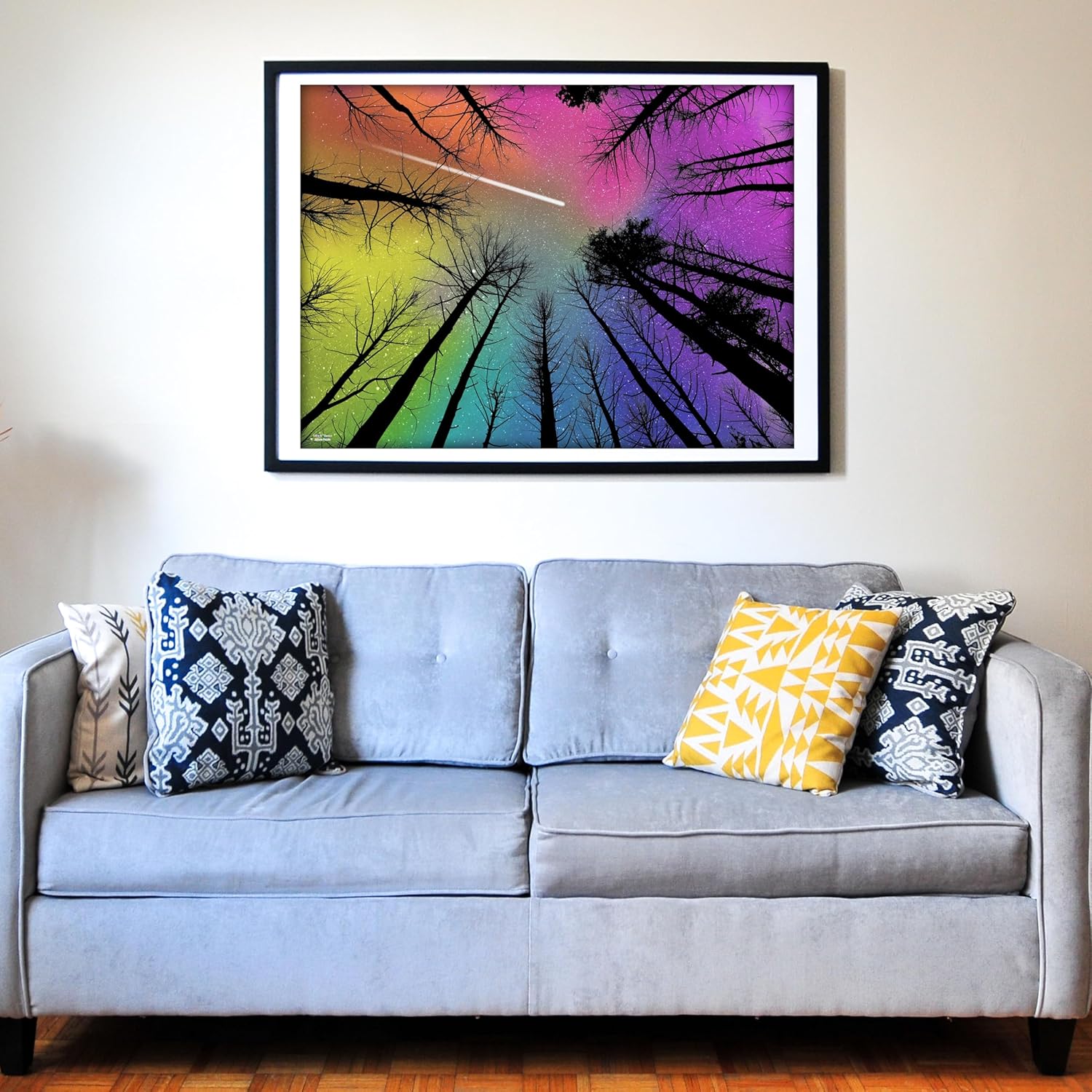 - 【Gradient Colorful Forest】 - This Wonderful Artwork includes a shooting star in a clearing of a colorful gradient Forest.
