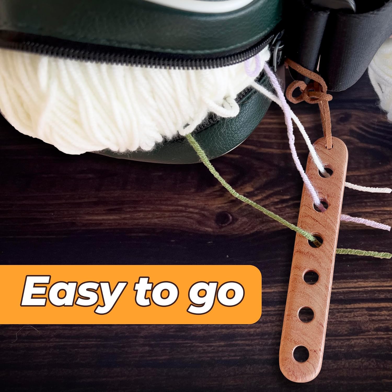 - Easy to Use and Store: Designed for simplicity and convenience, this wooden yarn divider features 6 holes and a leather strap for easy hanging. Just attach it to your yarn bag or place it wherever is most convenient, and start knitting. Its compact design makes it easy to carry anywhere, turning any space into a portable knitting or crocheting workshop.
