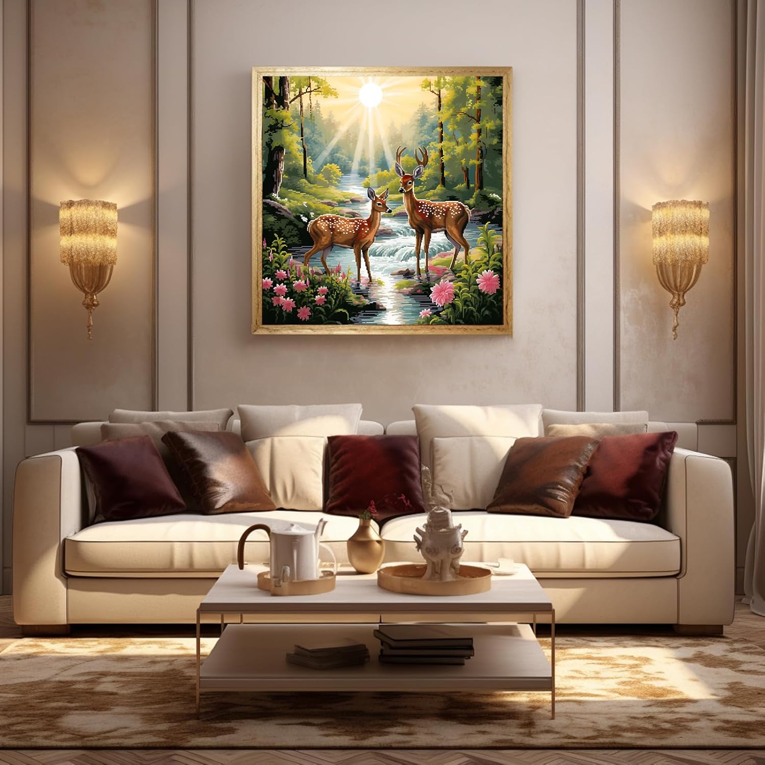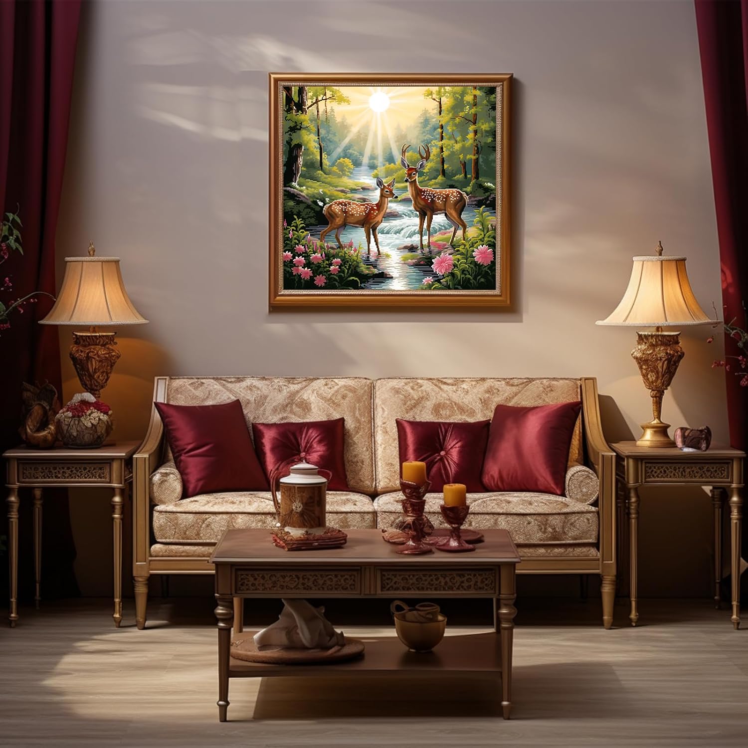 51buyoutgo 11CT Stamped Cross Stitch Kits for Adults - 16x16 in Beginner Embroidery Kit with Funny Easy Washable Deer Pattern, Pre Printed Fabric, Fit for DIY Home Decor, Mom Gifts & Stress Relief