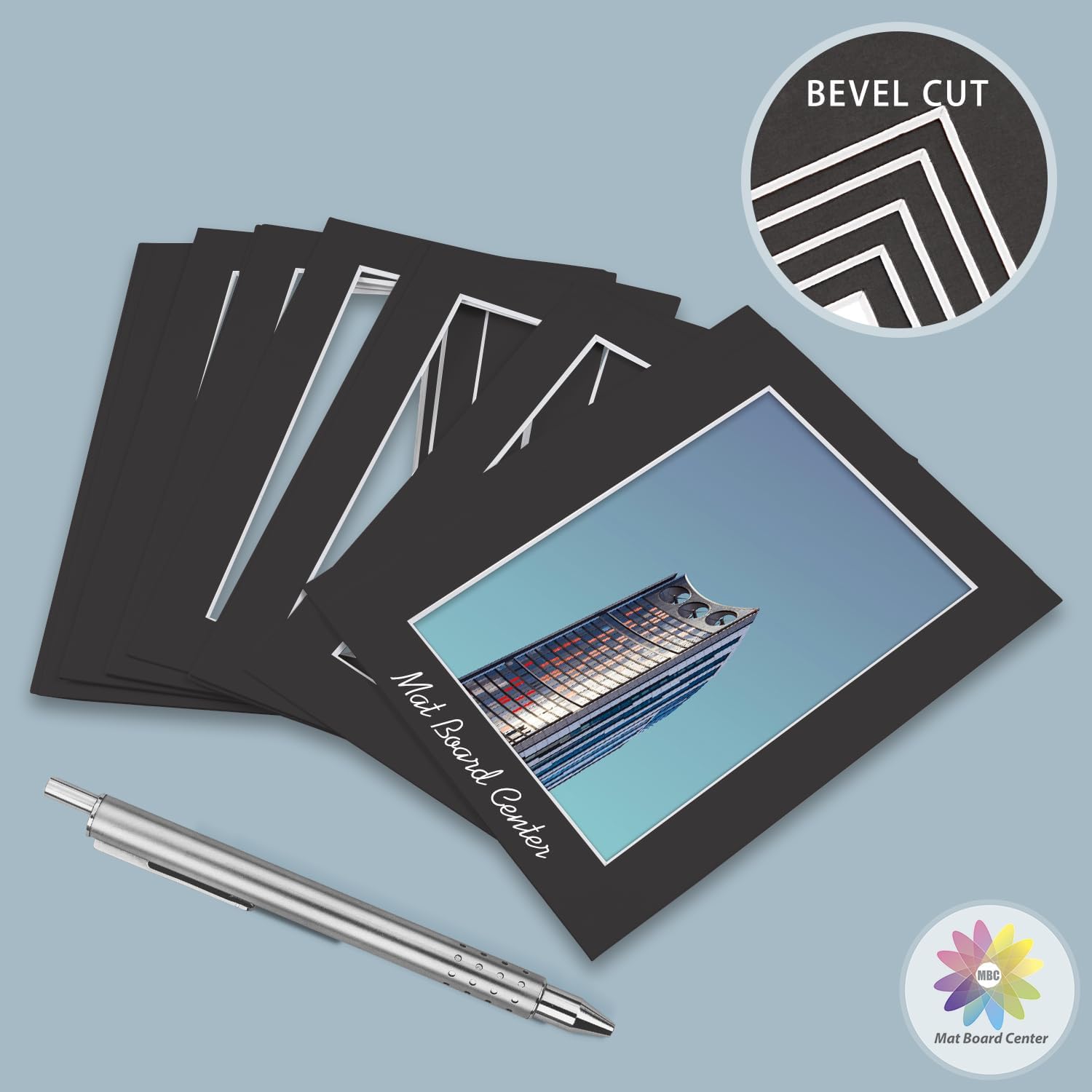 MBC Mat Board Center, 10 Pack 16x20 for 11x17 Black Picture Mats Frame Mattes, Bevel Cut, Acid Free, 4-ply Thickness