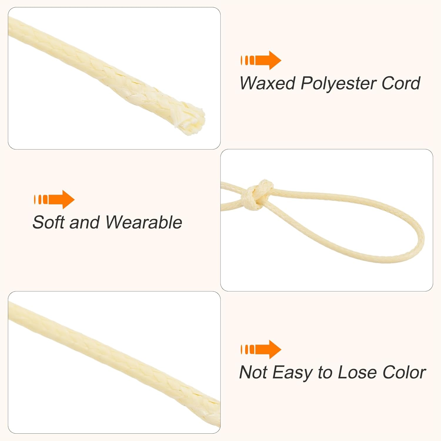 MECCANIXITY Waxed Cord 1.5mm Waxed Polyester Cord 175 Yard Wax String for Bracelet Making,Necklaces, Beading,Jewelry Making and DIY Crafts(Beige), 0.06 inch-Dia