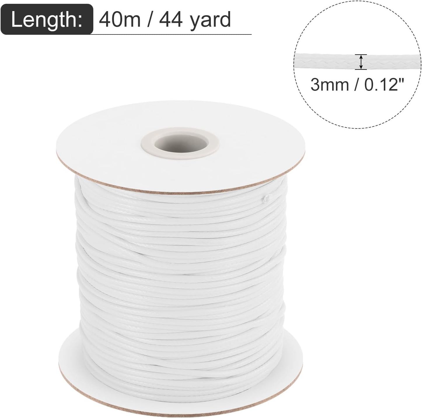 MECCANIXITY Waxed Cord 3mm Waxed Polyester Cord 44 Yard Wax String for Bracelet Making, Necklaces, Beading, Jewelry Making and DIY Crafts(White)