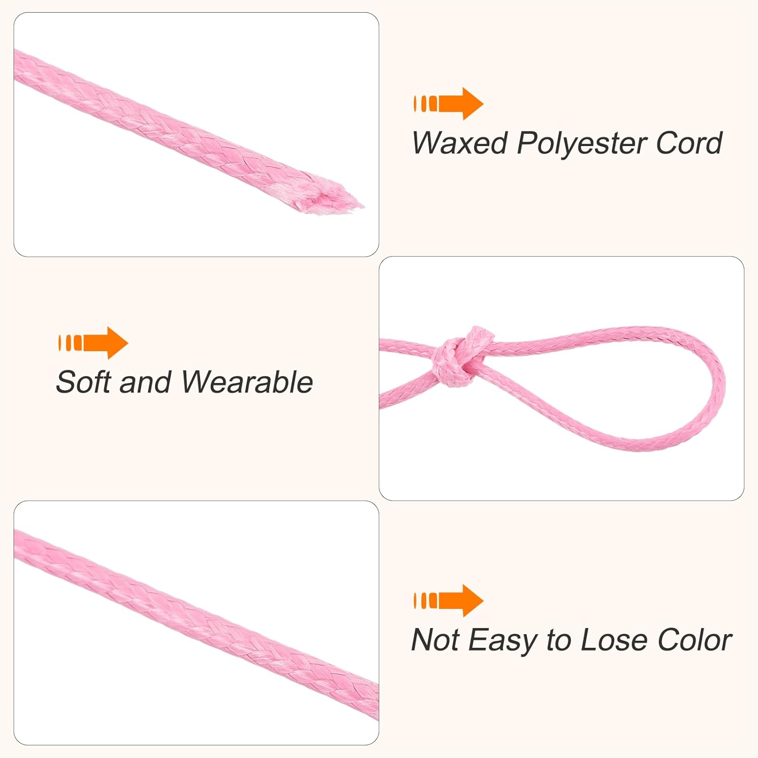 MECCANIXITY Waxed Cord 1mm Waxed Polyester Cord 175 Yard Wax String for Bracelet Making,Necklaces, Beading,Jewelry Making and DIY Crafts(Pink)