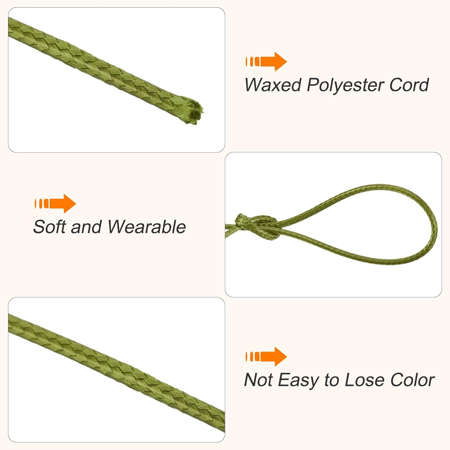 MECCANIXITY Waxed Cord 1mm Waxed Polyester Cord 175 Yard Wax String for Bracelet Making,Necklaces, Beading,Jewelry Making and DIY Crafts(Army Green), 0.04 inch-Dia
