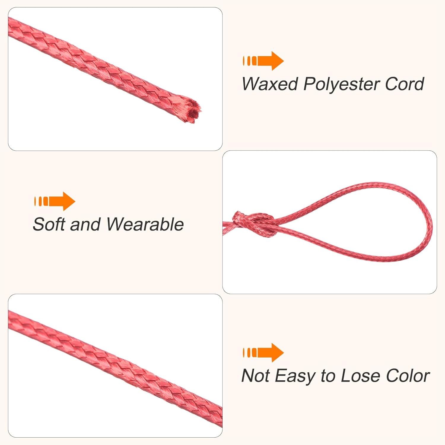 - This waxed ropes has bright and beautiful color,easily knotted and braided, you can use this waxed cotton thread to make bracelets, jewelry, friendship bracelets, macramé rope projects, packaging, leather sewing, scrapbooking, leather working, beading, and more. It is an important raw material for jewelry making and DIY crafting.
