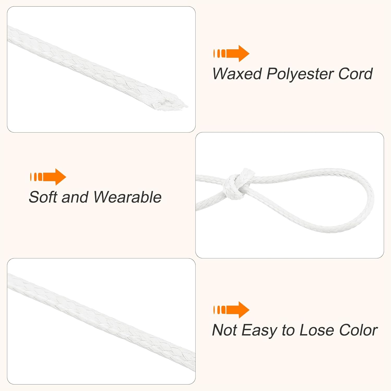 MECCANIXITY Waxed Cord 1mm Waxed Polyester Cord 175 Yard Wax String for Bracelet Making,Necklaces, Beading,Jewelry Making and DIY Crafts(White)