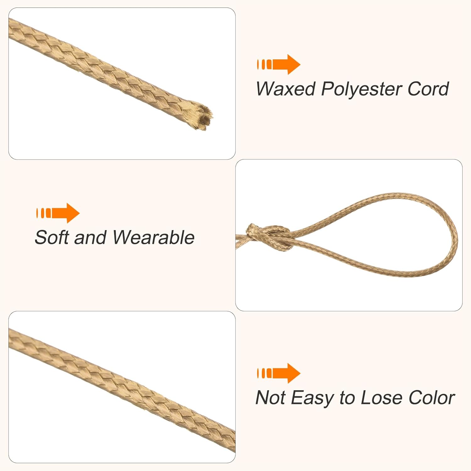 MECCANIXITY Waxed Cord 1.5mm Waxed Polyester Cord 175 Yard Wax String for Bracelet Making,Necklaces, Beading,Jewelry Making and DIY Crafts(Khaki), 0.06 inch-Dia