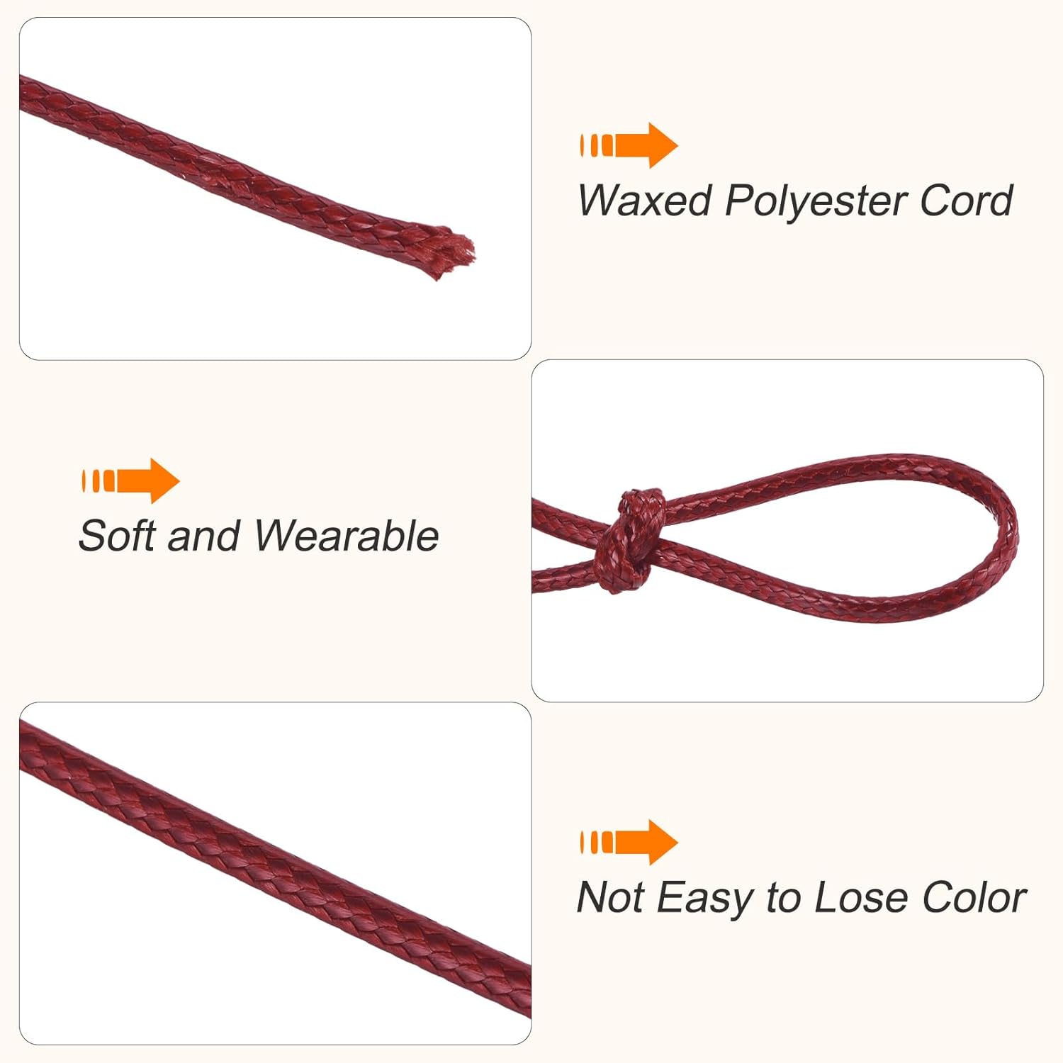MECCANIXITY Waxed Cord 0.5mm Waxed Polyester Cord 175 Yard Wax String for Bracelet Making, Necklaces, Beading, Jewelry Making and DIY Crafts(Dark Red)