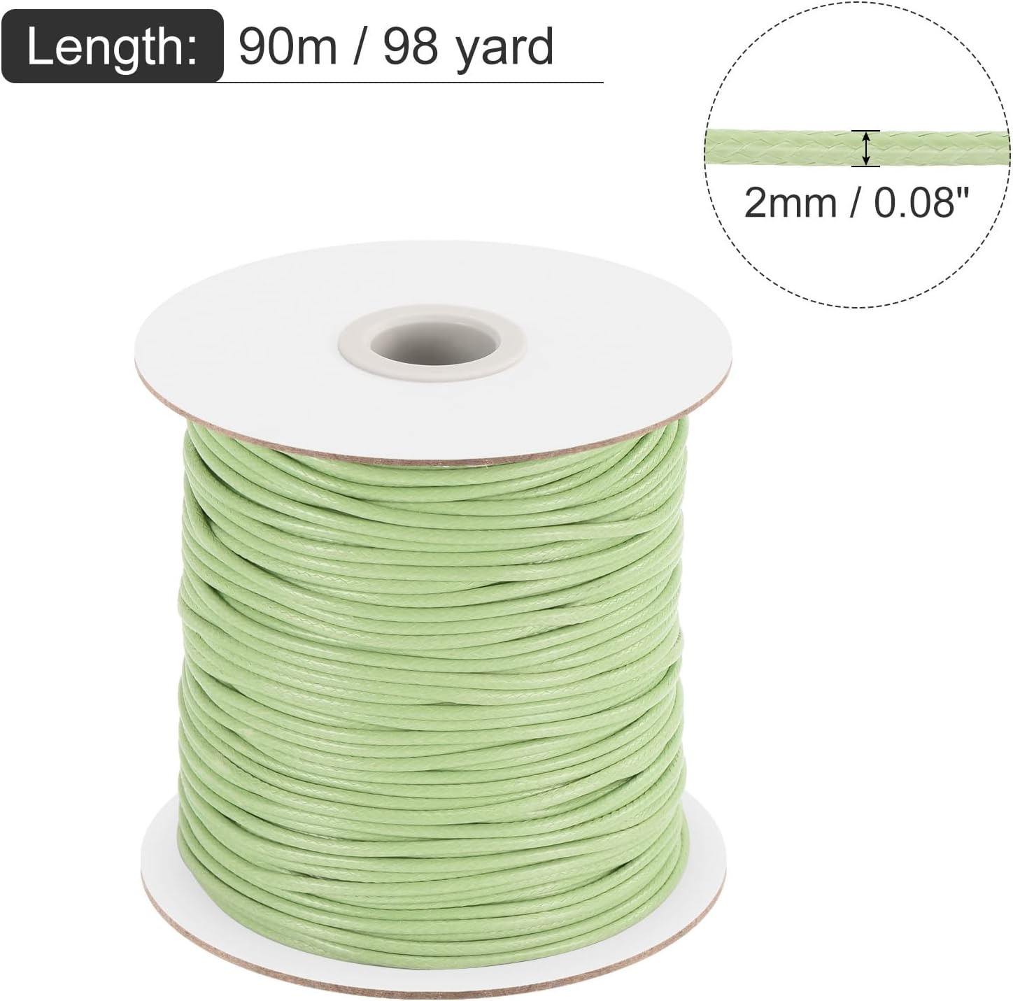 MECCANIXITY Waxed Cord 2mm Waxed Polyester Cord 98 Yard Wax String for Bracelet Making, Necklaces, Beading, Jewelry Making and DIY Crafts(Light Green)