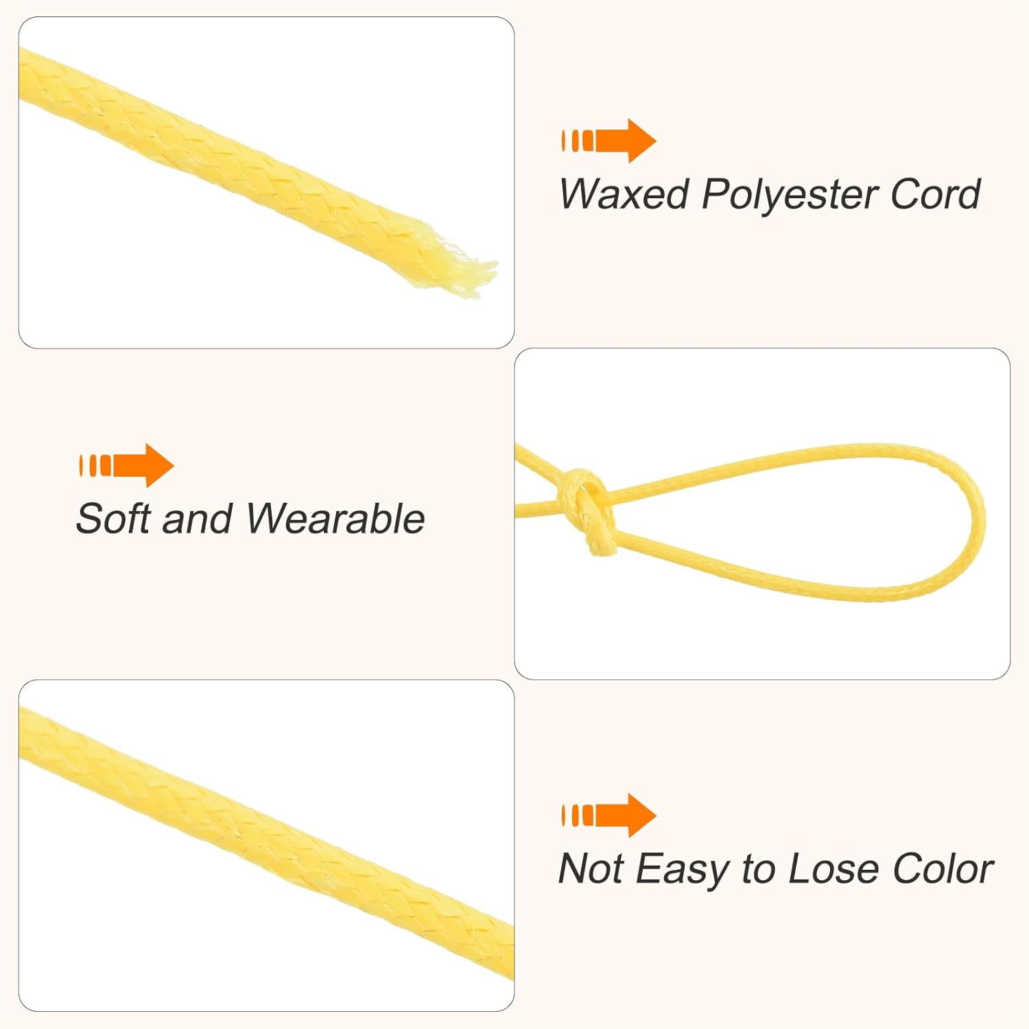 MECCANIXITY Waxed Cord 1.5mm Waxed Polyester Cord 175 Yard Wax String for Bracelet Making,Necklaces, Beading,Jewelry Making and DIY Crafts(Light Yellow)
