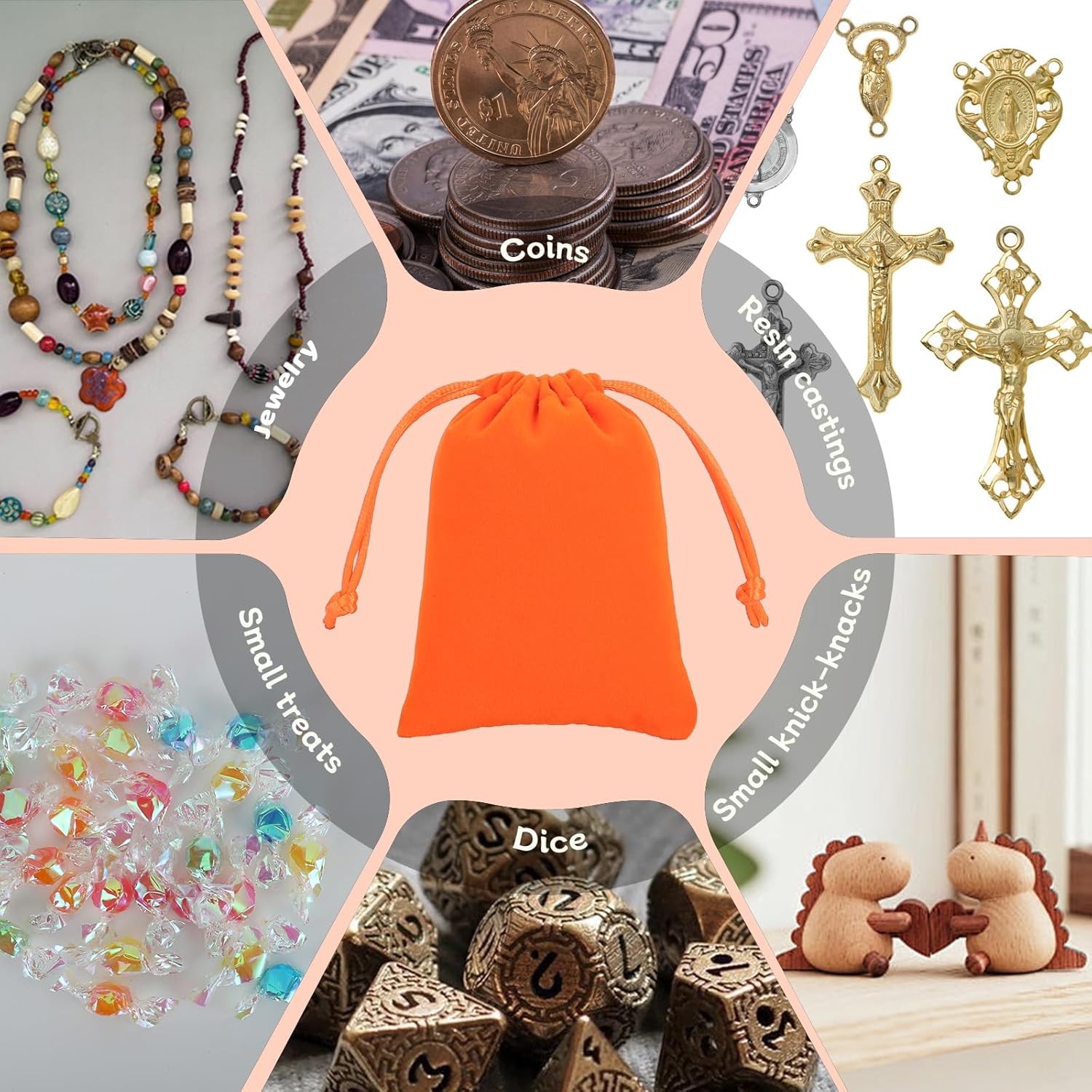 Velvet Drawstring Jewelry Bag, 50Pcs Orange Coin Pouch, 3x4 Dice Bag, for Wrapping Halloween Party Favors or Gifts for Friends, Small Bussiness, Craft Fair Vendor Supplies